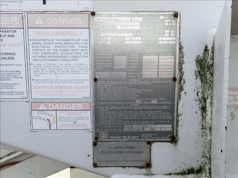 BUCKET TRUCK, HI-RANGER TPL-40, 40', 350 LB, DT466, AUTO