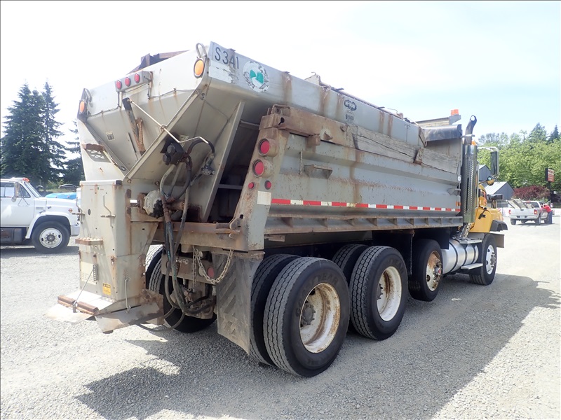 TRI/A, DUMP TRUCK, 17' STEEL BOX, HIGH LIFT GATE, TARP SYSTEM, 410 HP CAT C-12, AUTO, HAULMAXX SUSPENSION, 211" W/B, 18,000 LB FRONT, 40,000 LB REARS, DROP AXLE, PLUMB FOR PUP, HIGHWAY SANDER