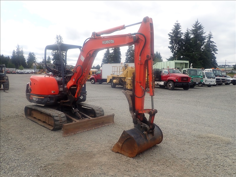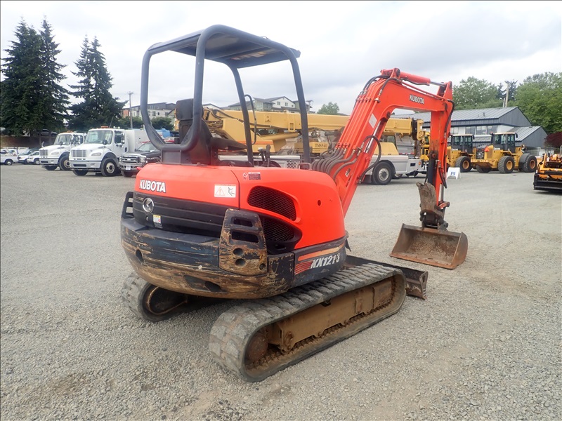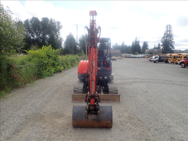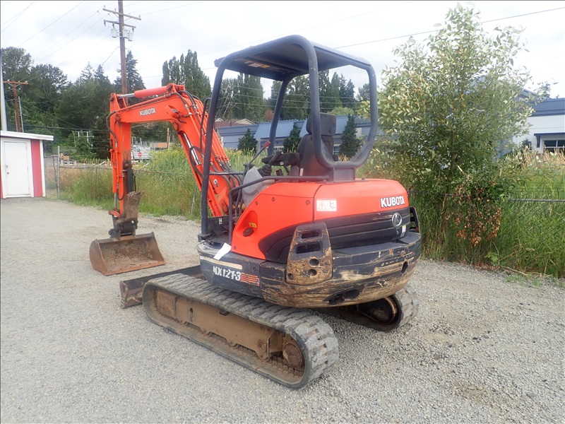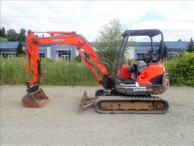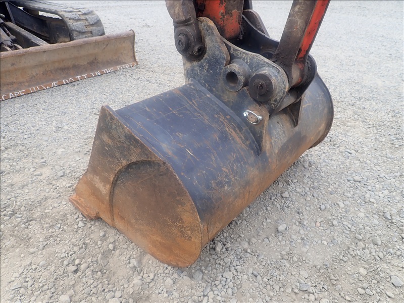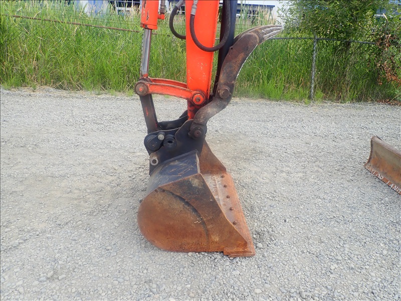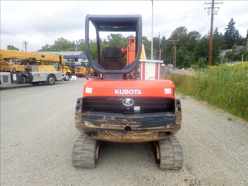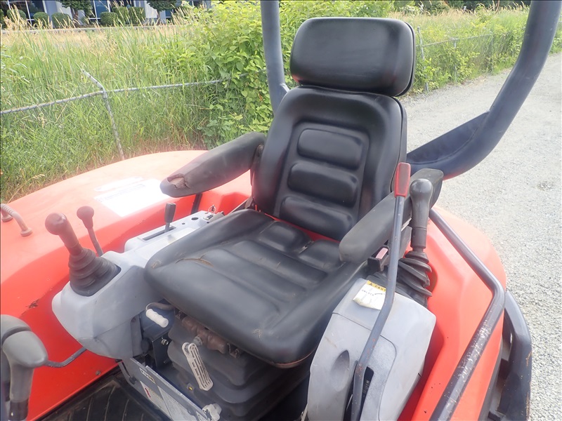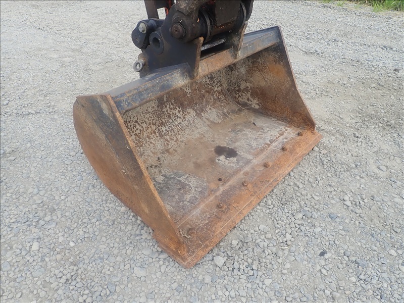 MINI EXCAVATOR, 42 HP V2203, SWING BOOM, HYD THUMB, BLADE, RUBBER TRACKS, CANOPY, HOUR METER READS: 3407