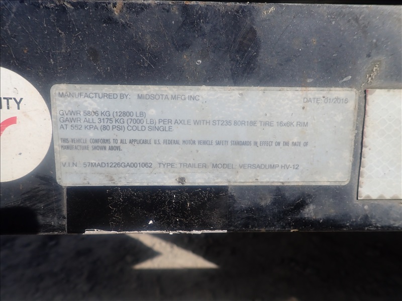 T/A 12' 12,800 LB GVWR DUMPTRAILER, E/B, SWING GATES,235/80-16