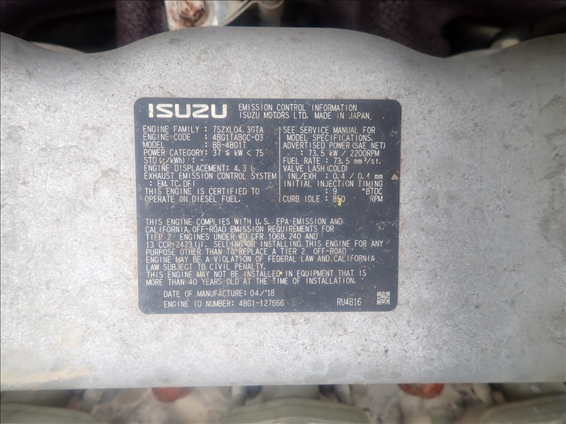 HYDRAULIC EXCAVATOR, 99.3 HP ISUZU 4BG1TRY-02A, 9'8" STICK, HYD THUMB, PIN GRABBER, 36" BUCKET, A/C CAB, HOUR METER READS: 07469