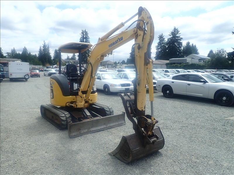 MINI EXCAVATOR, 29 HP 3D88E-5, SWING BOOM, HYD THUMB, AUX HYD, QC 36' CLEAN OUT BUCKET, 4 WAY BLADE, RUBBER TRACKS, CANOPY, HOUR METER READS: 2292