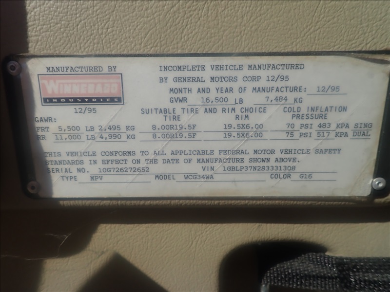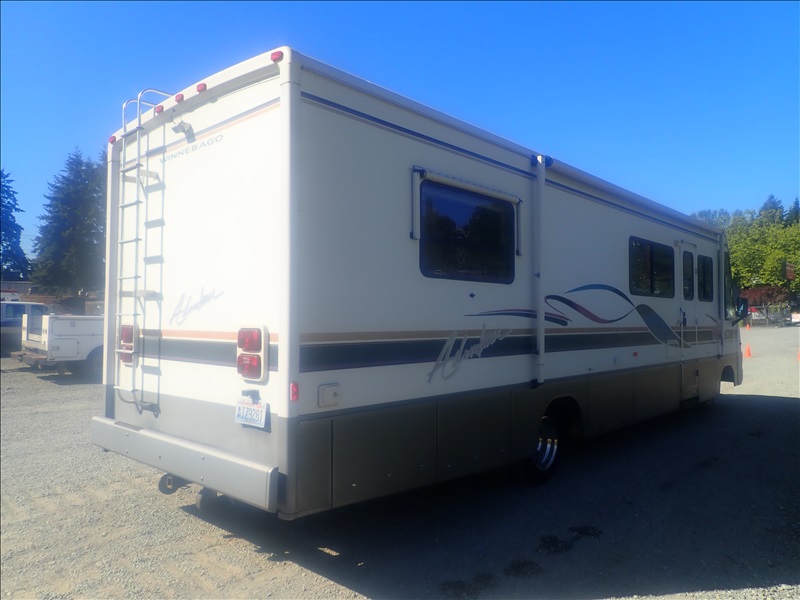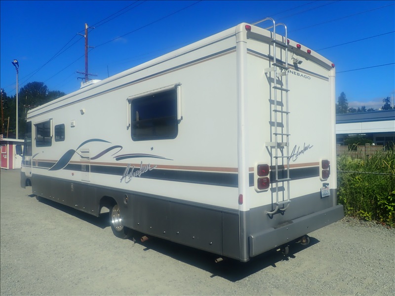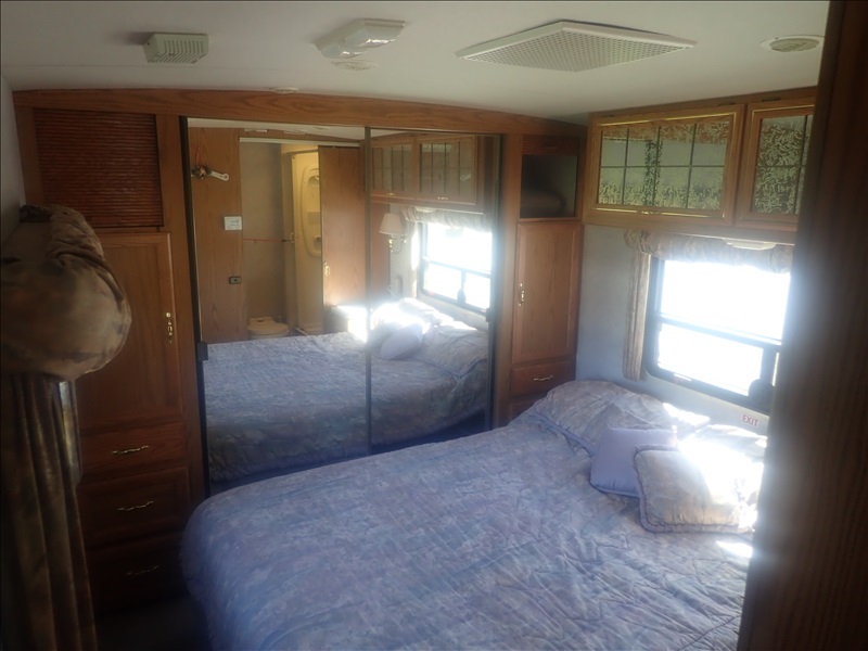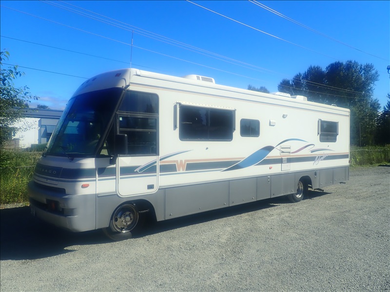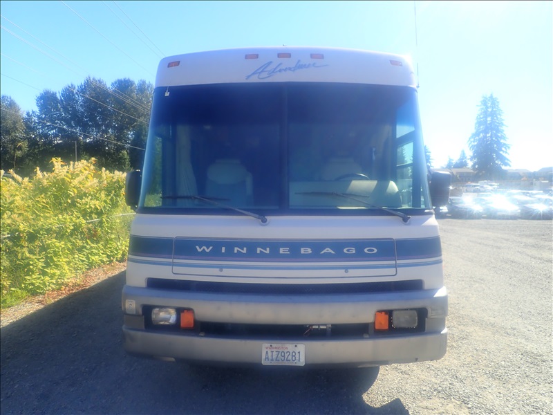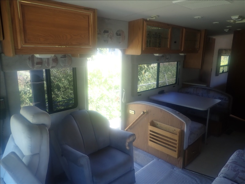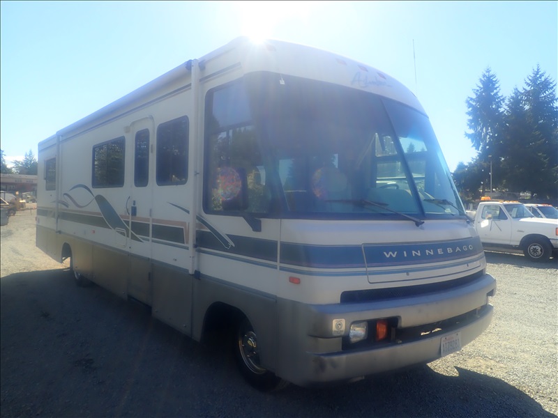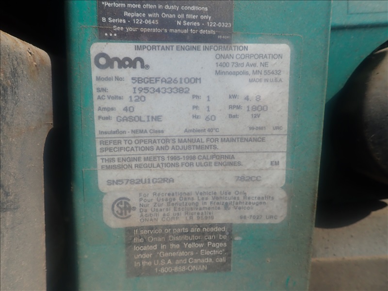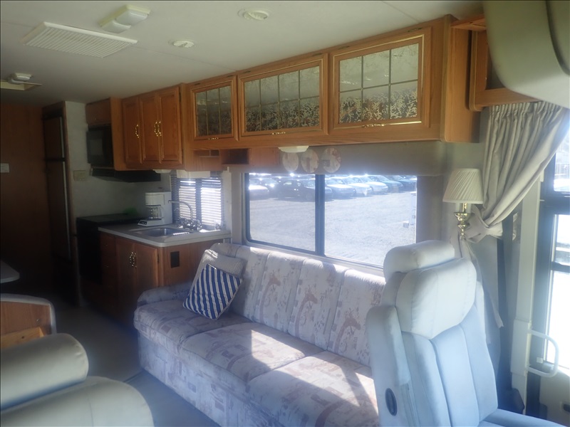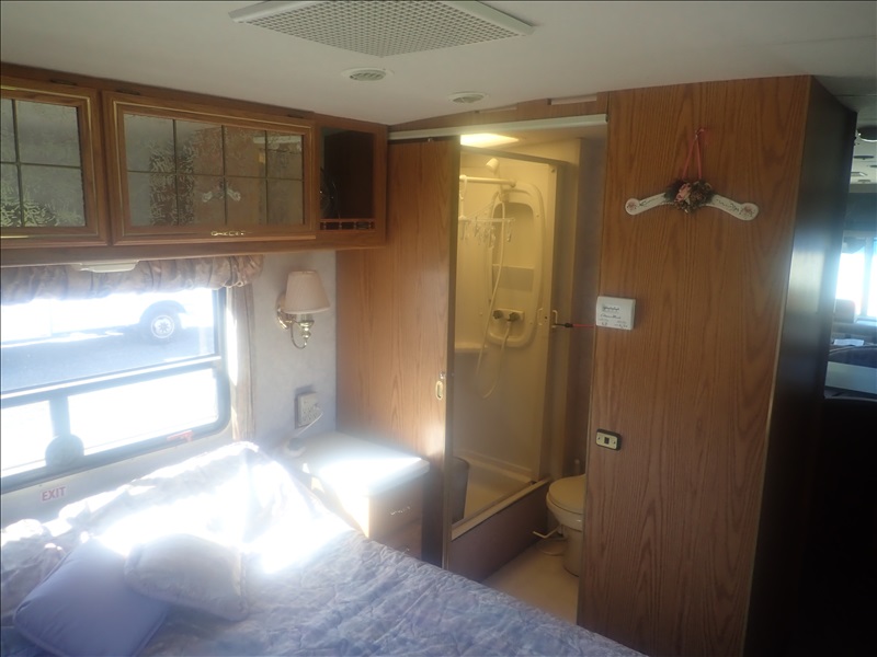 34' CLASS A FULLY SELF CONTAINED MOTORHOME, V8, AUTO, ROOF A/C, LEVELING JACKS, ONAN 5000 GEN SET