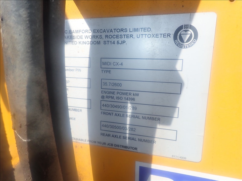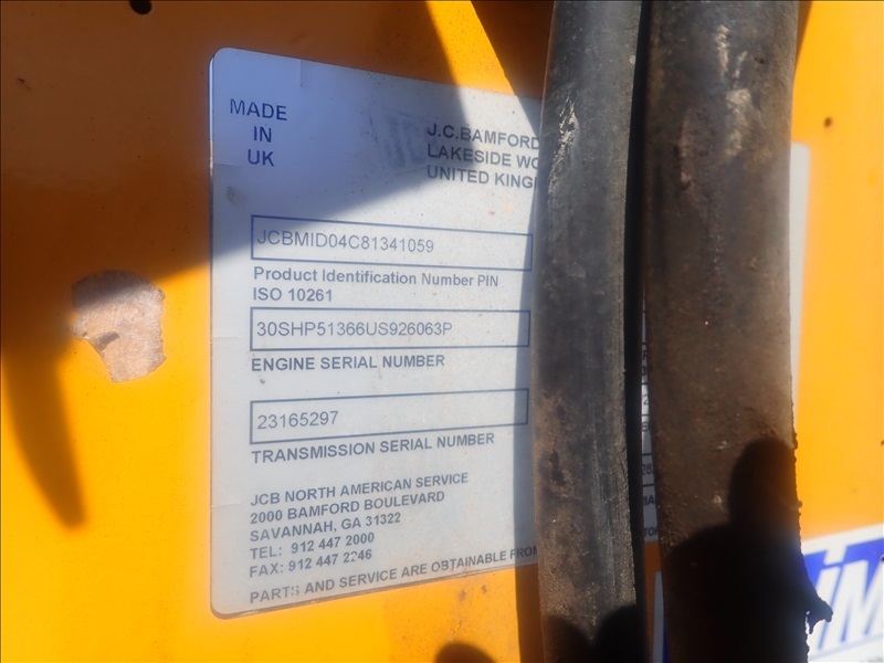 4X4 BACKHOE, 50 HP 404C22,HYDROSTATIC, QC 4 IN 1 LOADERBUCKET, HYD THUMB, AUX HYD,23" BUCKET, PTO, REARELECTRICS, CANOPY, HOUR METERREADS: 729 (CITY DISCLOSURE:WILL ONLY MOVE AT SLOW SPEEDS