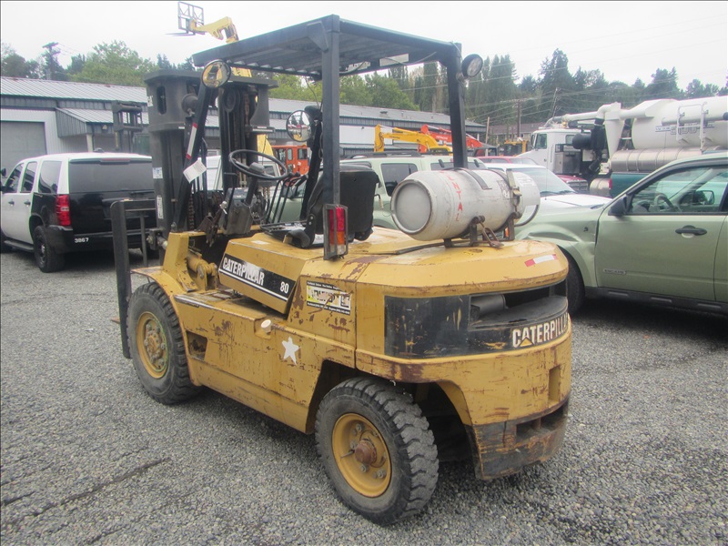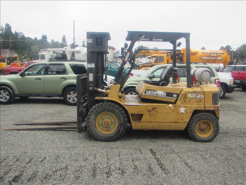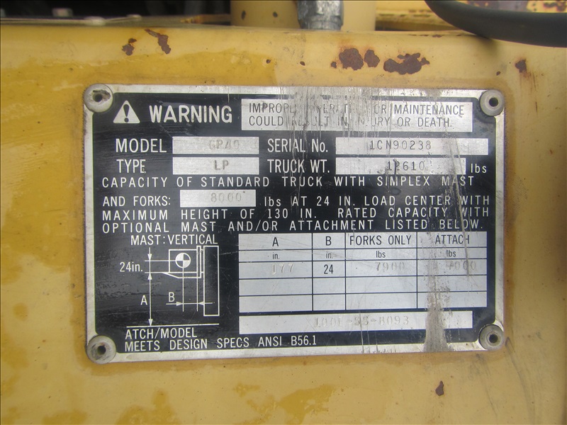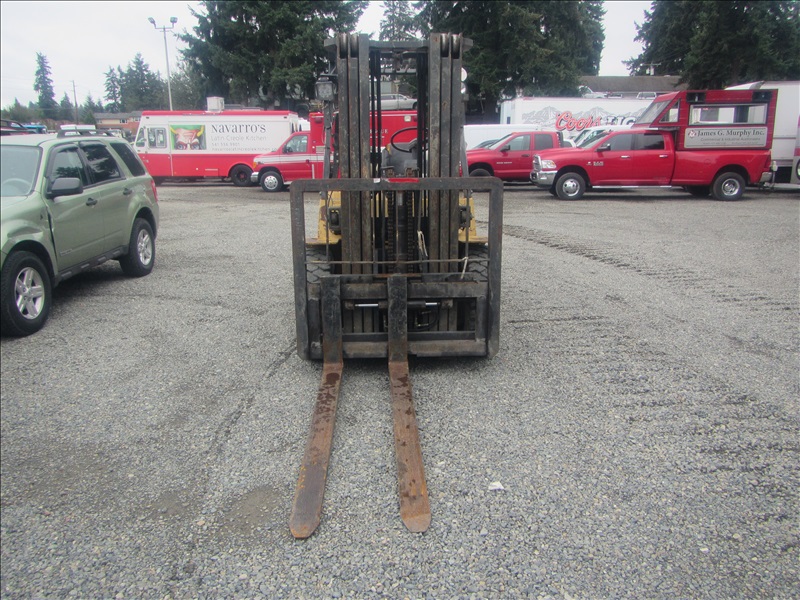 8,000 LB PNEUMATIC TIREFORKLIFT, 177" 3-STAGE MAST,SIDE SHIFT, 6 CYL PROPANEHOUR METER READS: 4,568