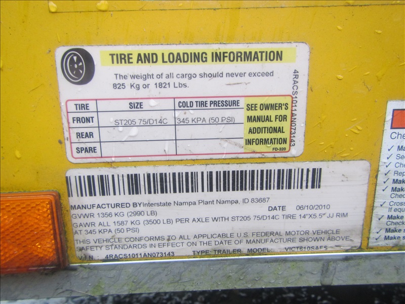 S/A 10'L X 6'W 3,500 LB GVWRENCLOSED TRAILER, RAMP DOOR(205/75-14)