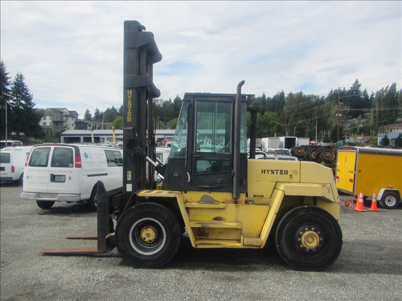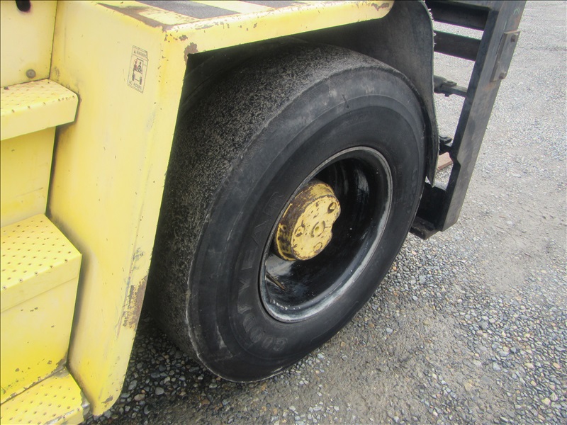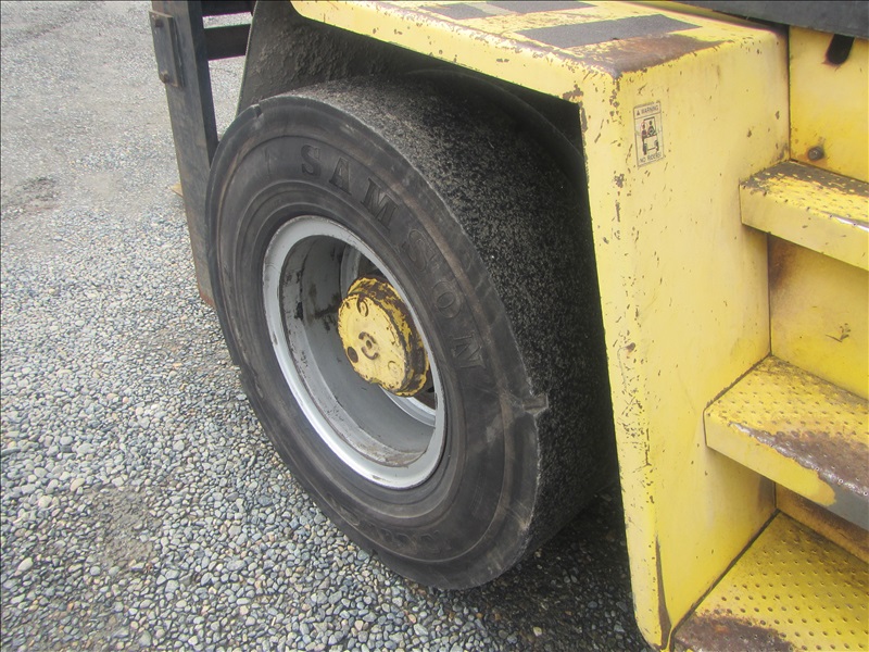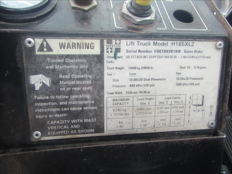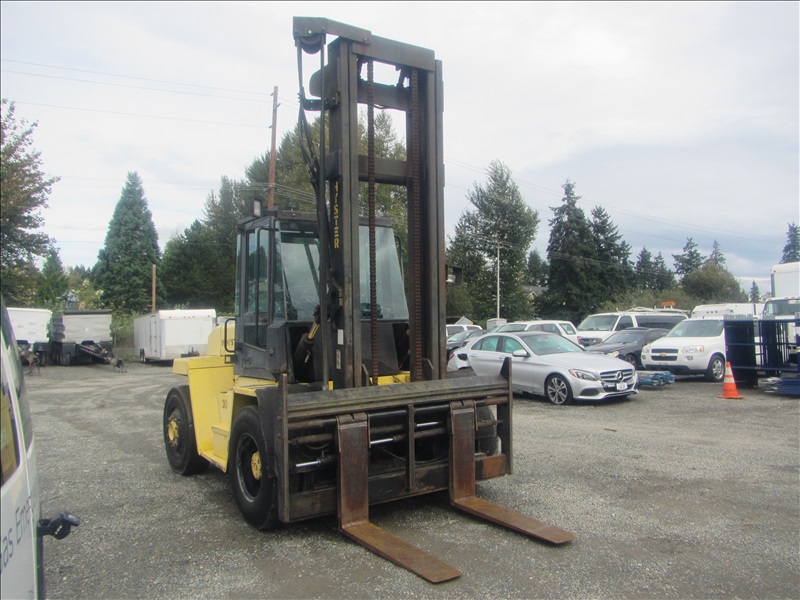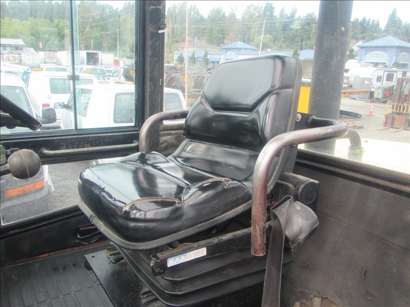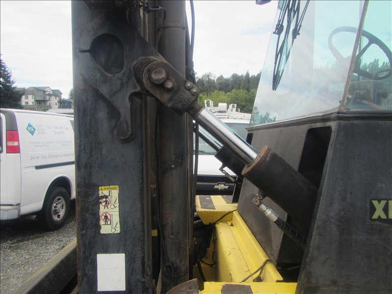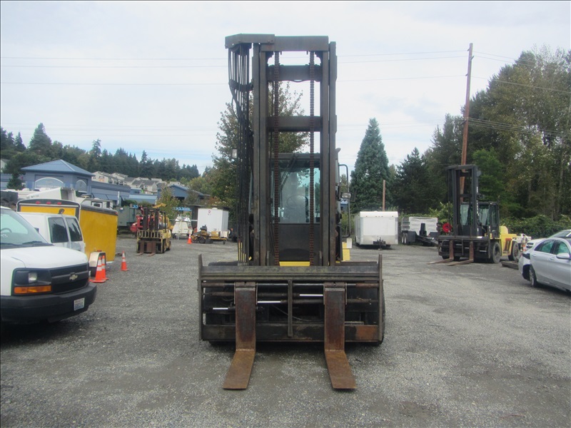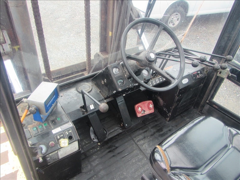 13,750 LB DUAL CUSHION TIREFORKLIFT, 2-STAGE MAST, 205"FORK HEIGHT, FORK POSITIONERS,SIDE SHIFT, LUMBER FORKS,DIGITAL SCALE, PERKINS, 6 CYLDIESEL, 3 RANGE MONOTROL,CAB, A/B
