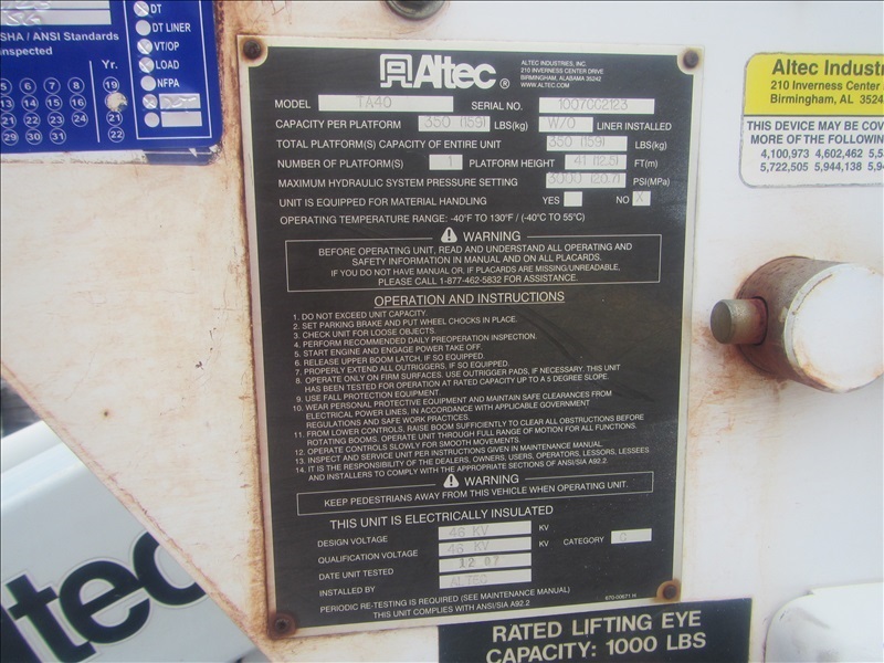 BUCKET TRUCK, ALTEC TA40, 41'350 LB MAXXFORCE, AUTO