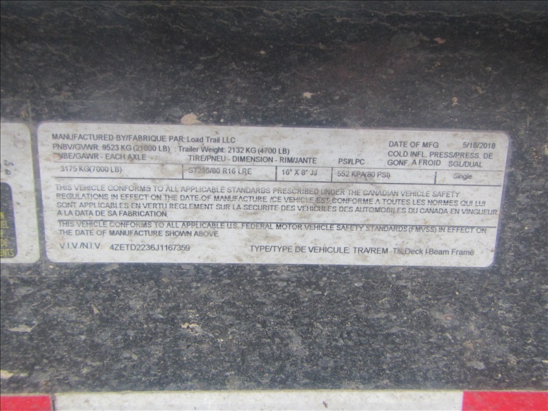 2018 LOADTRAIL TRI/A EQUIPMENT TRAILER