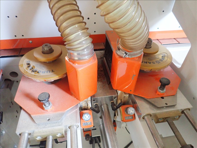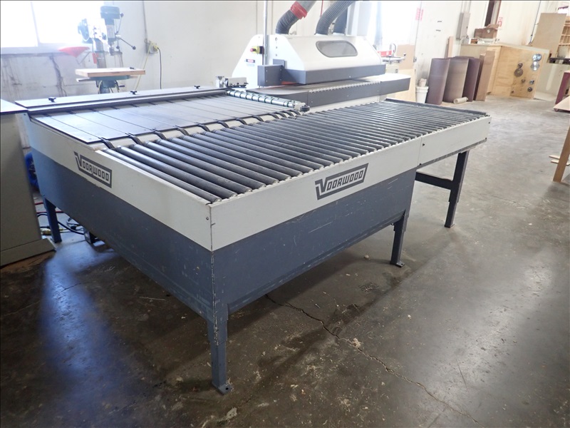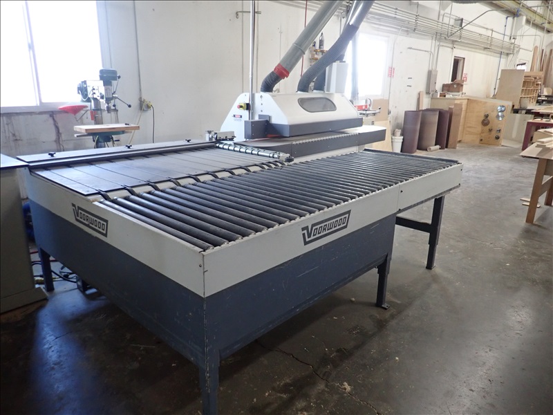 SHAPER/SANDER, TWIN SHAPER HEADS, TWIN SANDER HEADS, 3" FEED CONVEYOR, SIEMENS SIMATIC TOUCH SCREEN CONTROLS, VOORWOOD VSD OUTFEED TRANSFER CONVEYOR