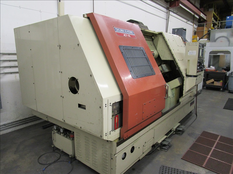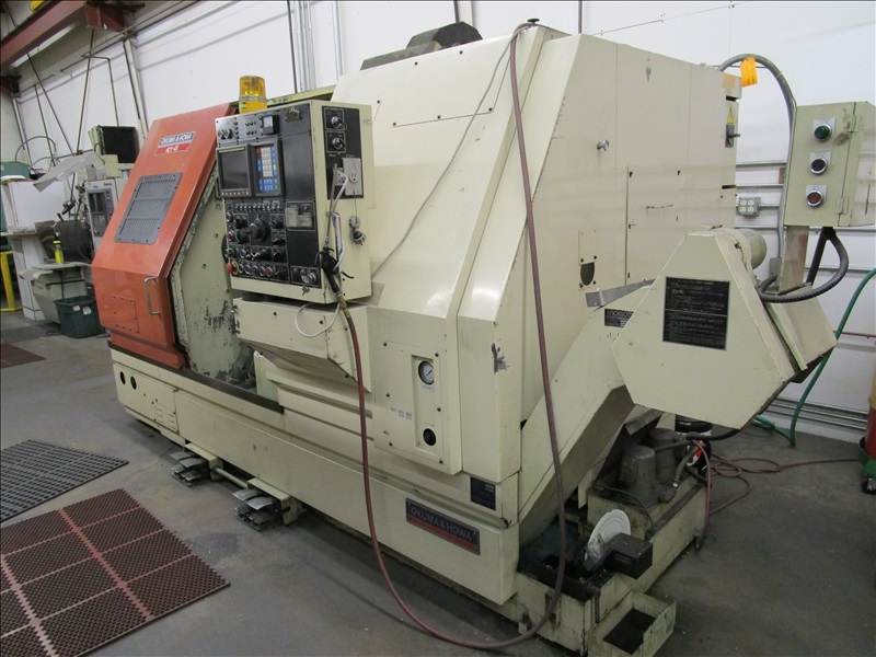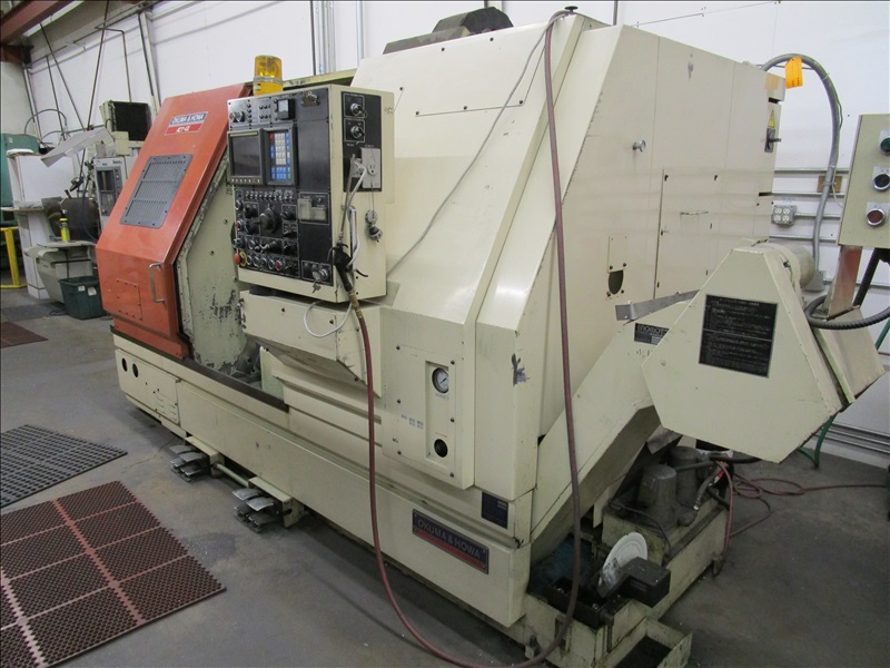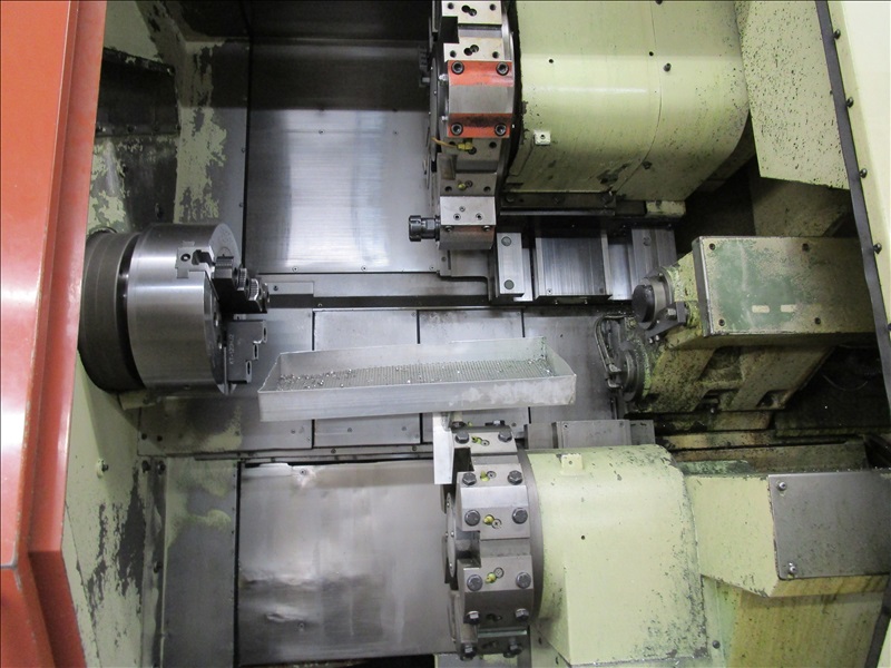 CNC LATHE W/TWIN SPINDLE, ENOMOTO CHIP CONVEYOR, FANUC SERIES O-TT CONTROLS & TOOLING