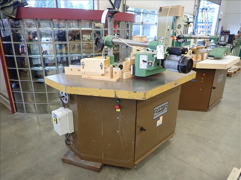 TRIPLE SPINDLE DOOR SHAPER, 3 BALDOR 36A01X100 5 HP, 230V, 3 PHASE, PNUEMATIC HOL DOWNS, MAGGI 2038 3 DRUM POWER FEEDER, 230V, 3 PHASE