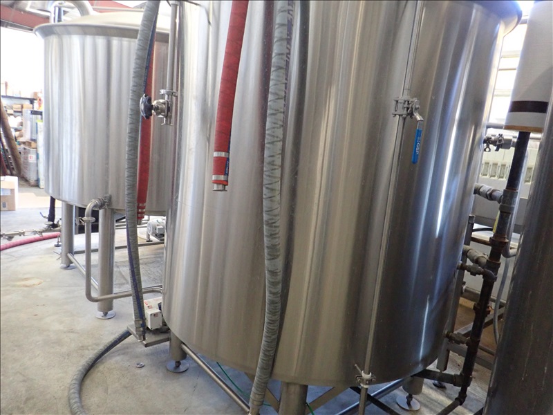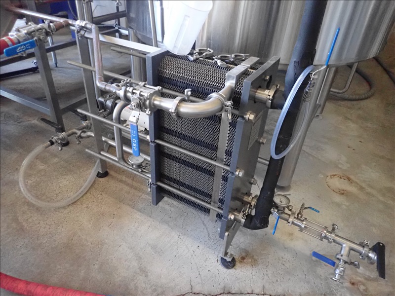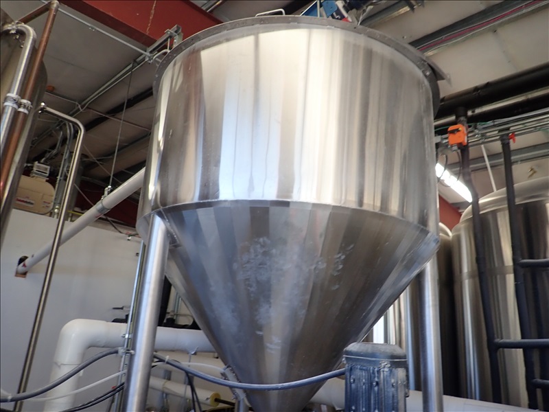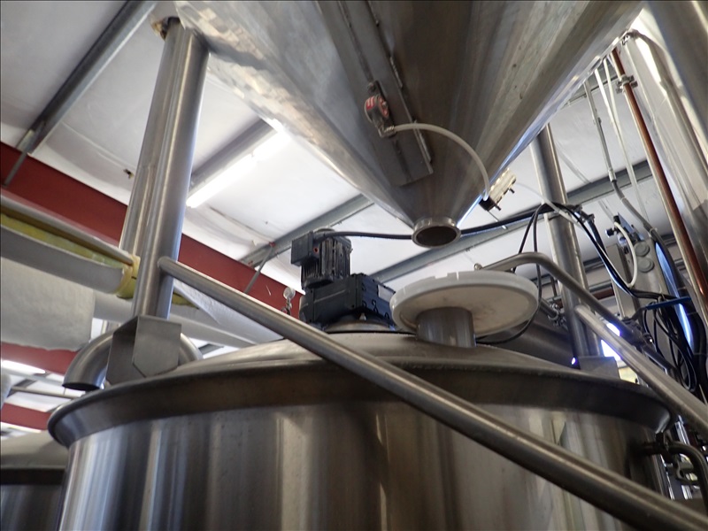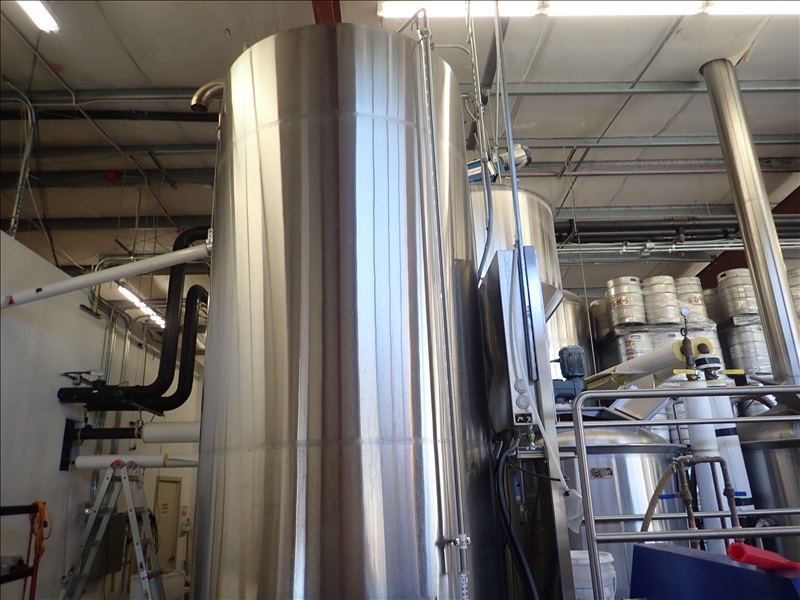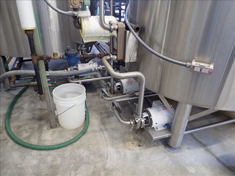 3-VESSEL BREWHOUSE W/JACKETED MASH TUN MIXER, BOIL KETTLE, WHIRLPOOL, 45BBL INSULATED HLT W/SONDEX BRAZE SL34TL-20-II HEAT EXCHANGER, GRAIN HOPPER W/VIBCO PNEUMATIC VIBRATOR, 2014 THERMALINE T13-S-36 HEAT EXCHANGER, TCP CONTROL PANEL, PUMPS, CATWALK, STAIRS & PIPING