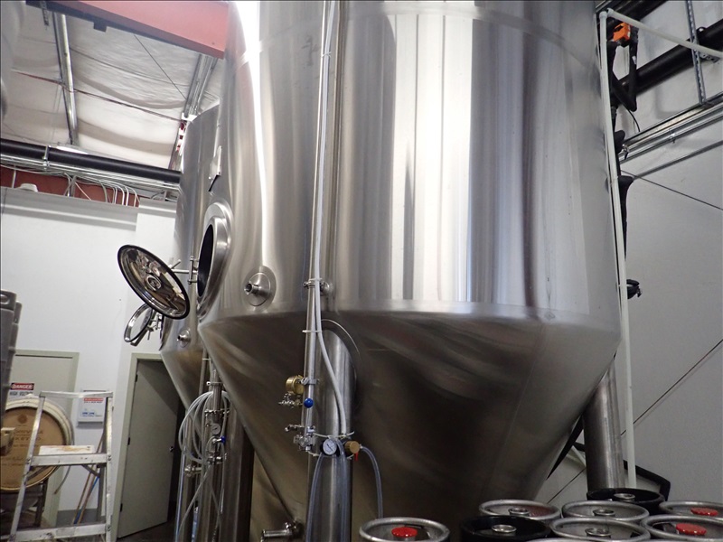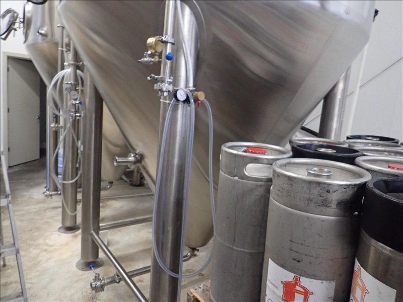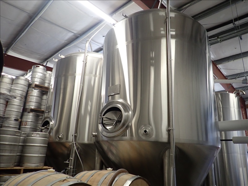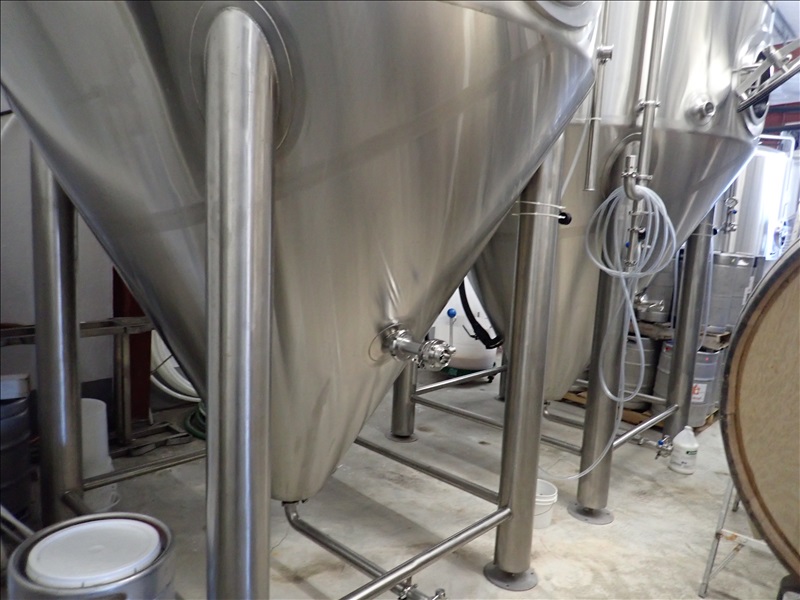 GROUP OF (4) PACIFIC BREWERY SYSTEMS 60BBL STAINLESS STEEL JACKETED FERMENTATION TANKS W/GATES, VALVES & PROBES