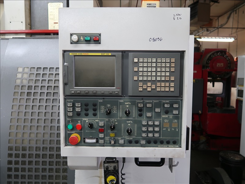 CNC VERTICAL MACHINING CENTER, 20"X44" TABLE, 24 STATION ATC, CHIP CONVEYOR, FANUC MXP-100I CONTROLS
