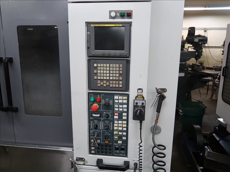 CNC VERTICAL MACHINING CENTER, 22"X48" TABLE, 24 STATION ATC, CHIP CONVEYOR, FANUC MXP-100I CONTROLS