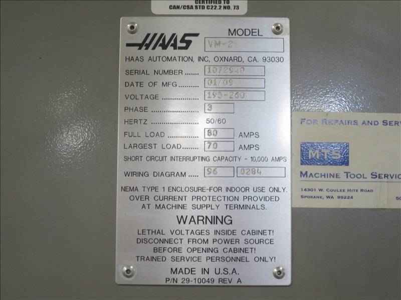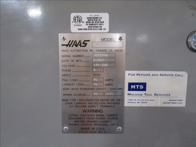 VERTICAL MACHINING CENTER, HAAS CONTROLS, 24 CAT, 40 ATC & TOOLING W/RENISHAW PROBE