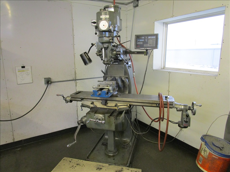 VERTICAL MILLING MACHINE W/POWER TABLE, UNIQ DIGITAL READOUT, VISE & TOOLING