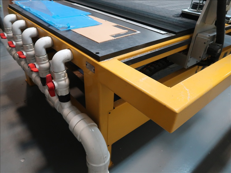 ATC 120"X60" CNC ROUTER TABLE, ES929 SPINDLE, RAPID SPEED: 2,500 IPM, CUT SPEED; 1,500 IPM, X AND Y AXIS DRIVE HELICAL RACK & PINION, Z AXIS DRIVE PRECISION BALL SCREW, ATC, MICROSYSTEMS WINCNC CONTROLLER VERSION 2.5.03, 2,940 RPM/MIN VACUUM HOLD DOWN SYSTEM