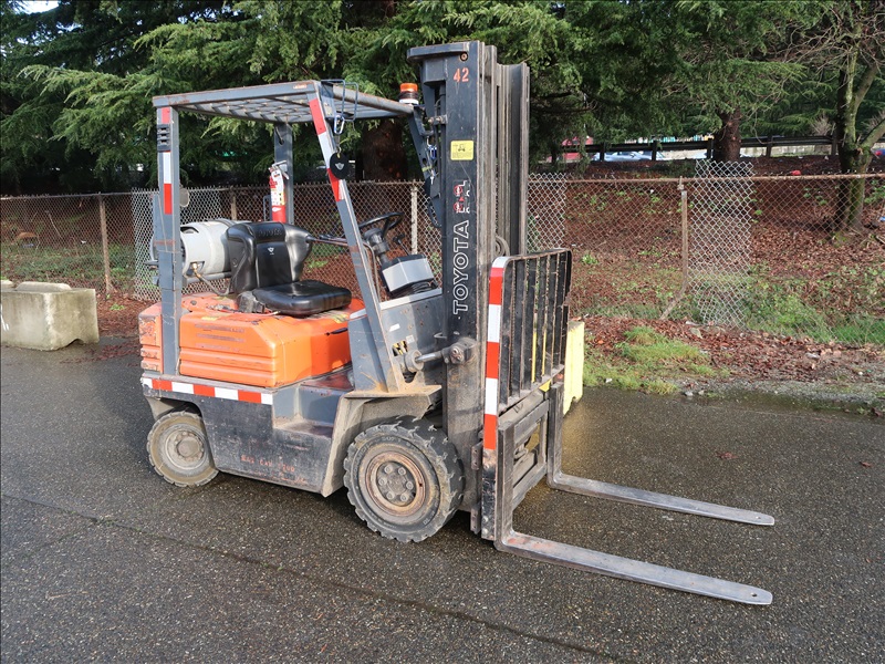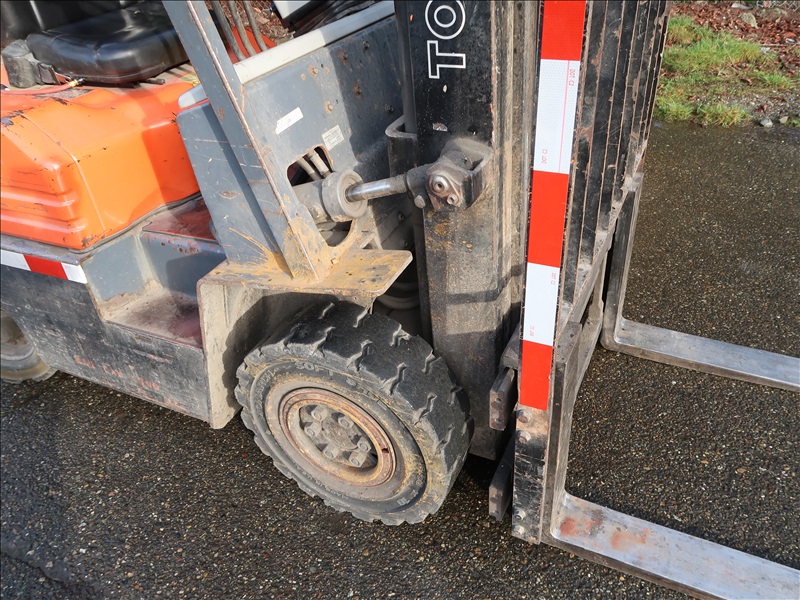 2,600 LB FORKLIFT, 3-STAGE MAST, SOLID TIRES, SIDE SHIFT, PROPANE