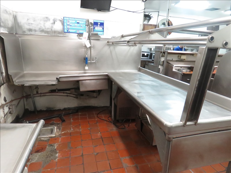 APPROX 95" X 98" L-SHAPED DIRTY DISH SINK W/RINSE WAND