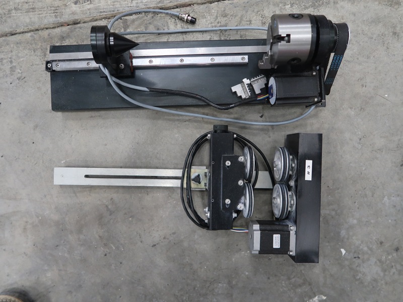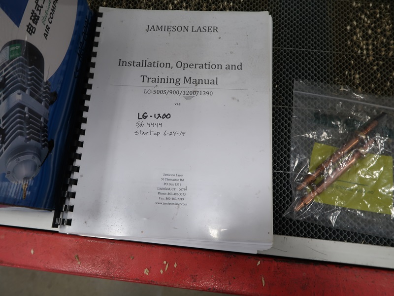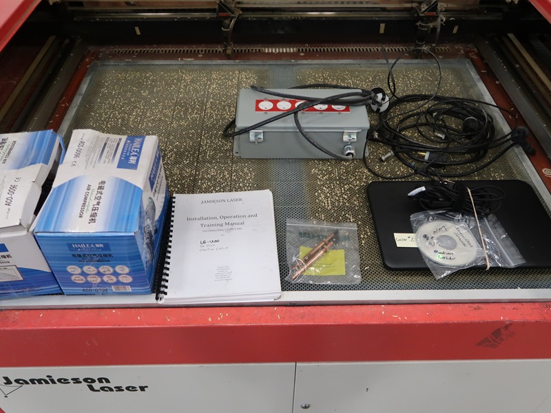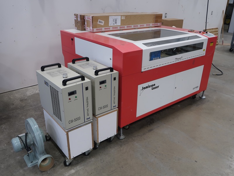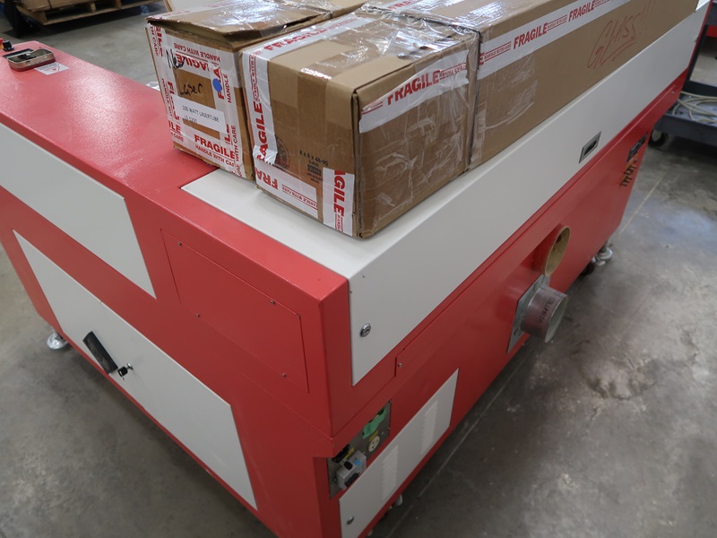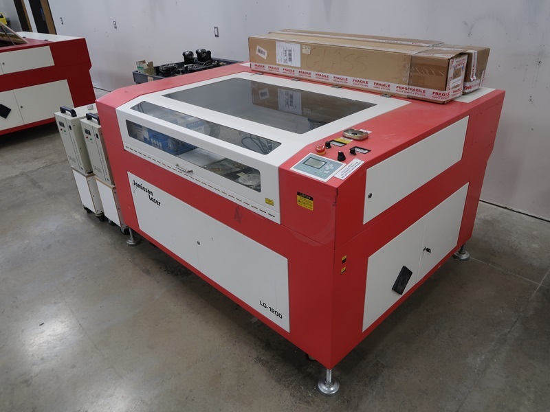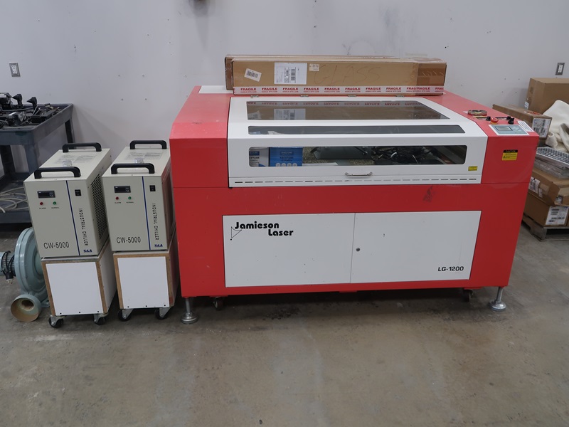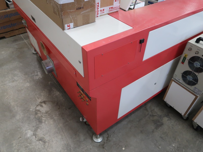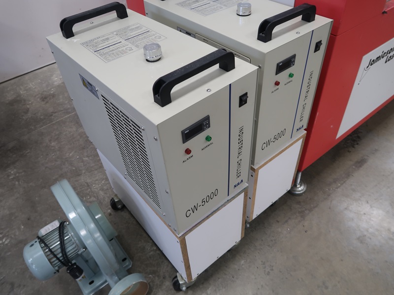 DUAL HEAD 100 WATT CUTTING SYSTEM, SPARE LASER HEAD, (2) S&A CW-500 CHILLERS, 34"X44" CUTTING AREA (600mmX1200mm), HP LAPTOP W/ OPERATING SOFTWARE, (2) ROTARY HEADS, 220V, SINGLE PHASE, S/N: 4444