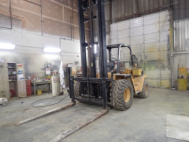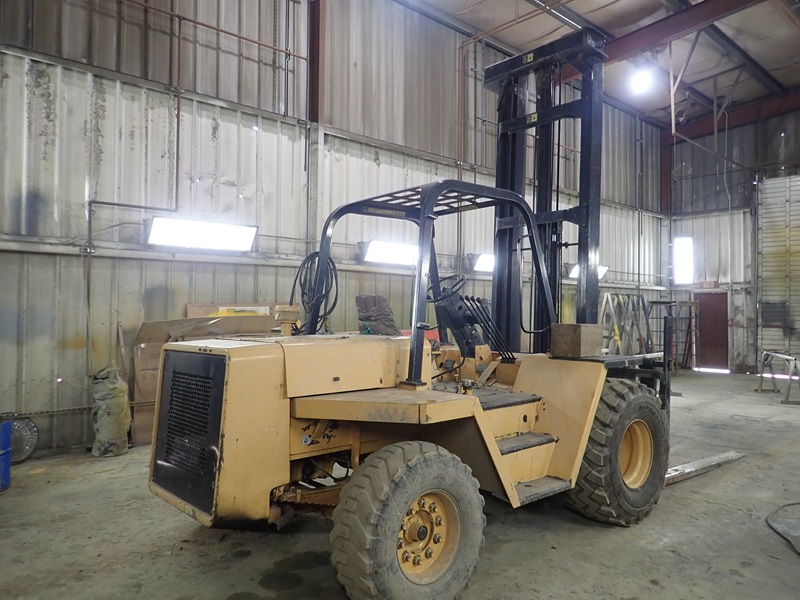 8,000 LB CAPACITY ROUGH TERRAIN FORKLIFT, 3-STGE MAST, SIDE SHIFT, 4-SPD, DETROIT 4 CYL. DIESEL