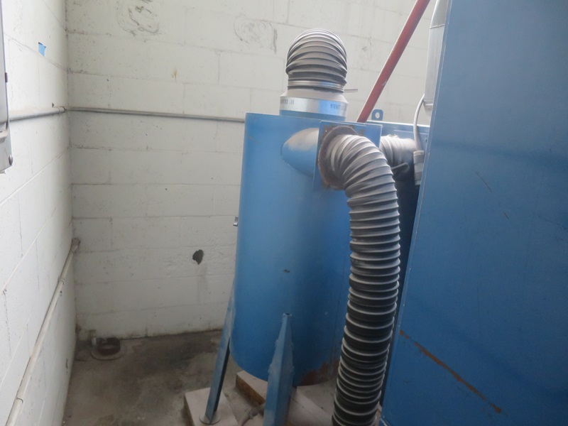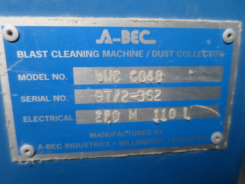 ABRASIVE BLAST CABINET W/FOOT CONTROL, A-BEC ADC-1210 MEDIA RECLAIM/EXHAUST UNIT, & ABRASIVE MEDIA MATERIAL TANK: 220V
