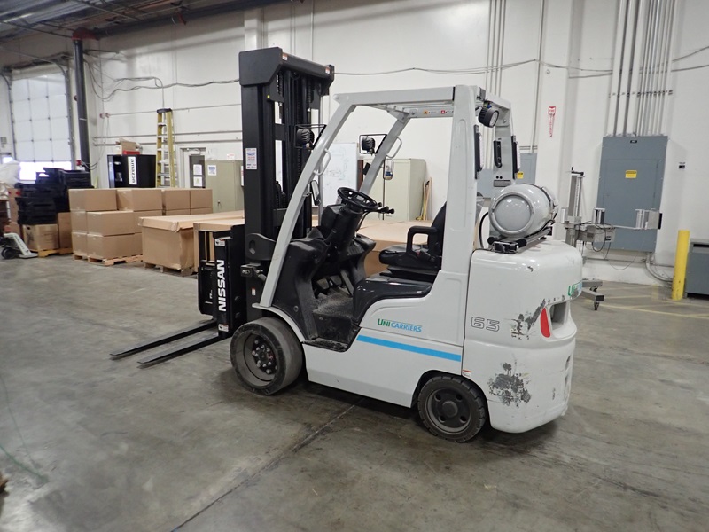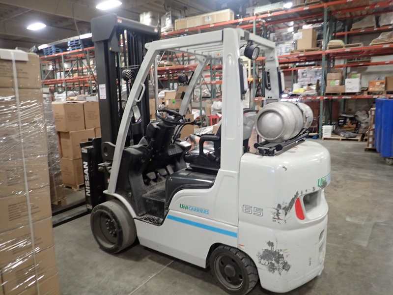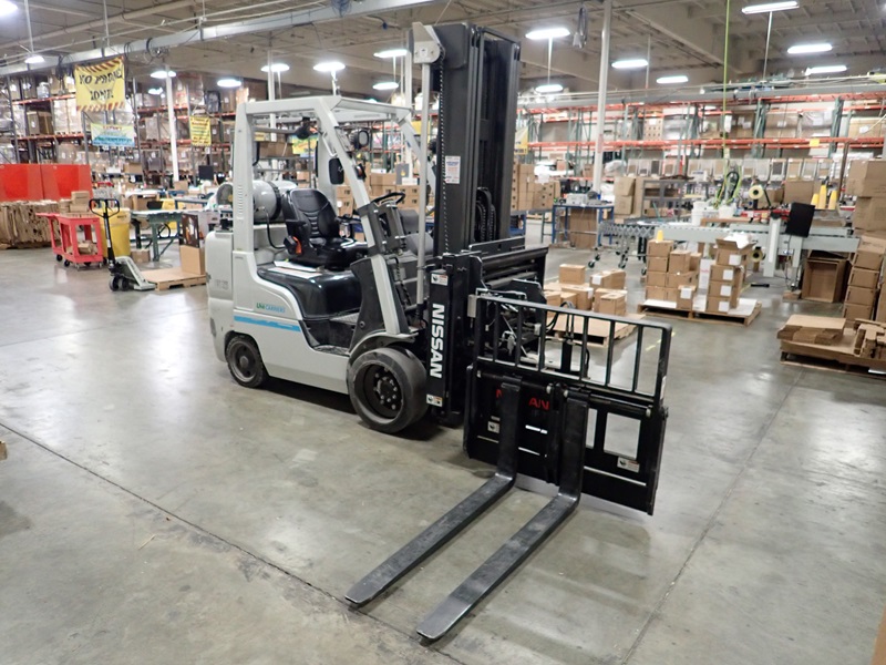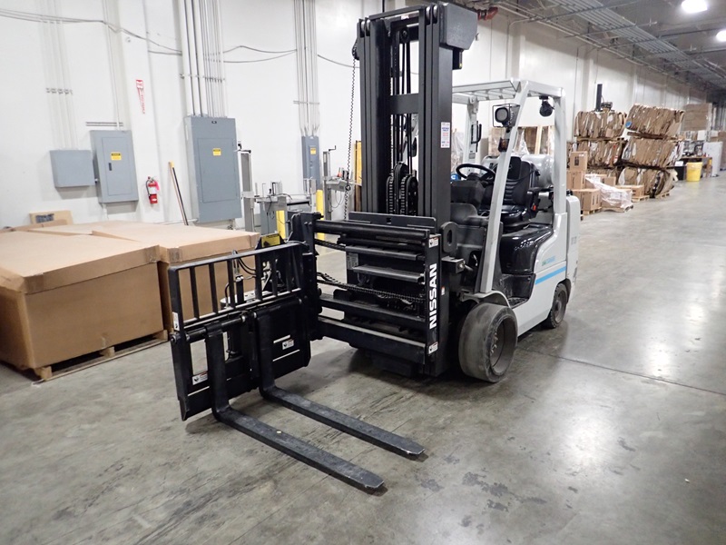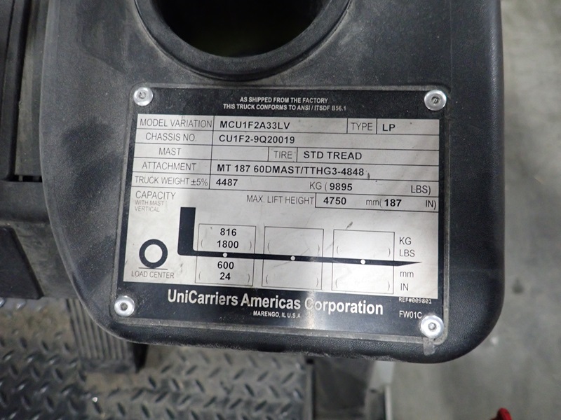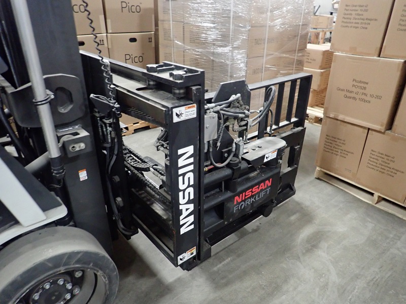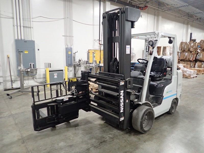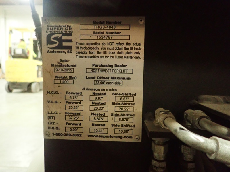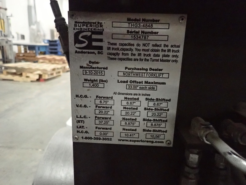 1,800 LB CAP. SOLID TIRED FORKLIFT, SUPERIOR ENGINEERING THG3-4848 TURRET ATTACHMENT, 3-STAGE MAST, 187" LIFT HEIGHT, PROPANE, S/N:CU1K2-9Q20019, HRS: 694