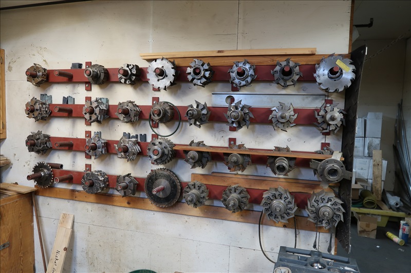 4"X8" 6-HEAD MOULDER (ONLY 5-HEADS ON MACHINE), (2) BOTTOM & (1) TOP HEAD 20 HP, (2) 10 HP SIDE HEADS, POWERED FEED THRU ROLLS & VERTICAL INFEED ROLLS, SPARE HEADS & PARTS (MOULDER BUILDING)