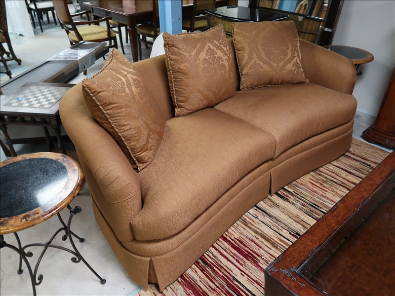 (2) 82" CUSTOM ROUNDED BACK FABRIC SOFAS W/MATCHING THROW PILLOWS