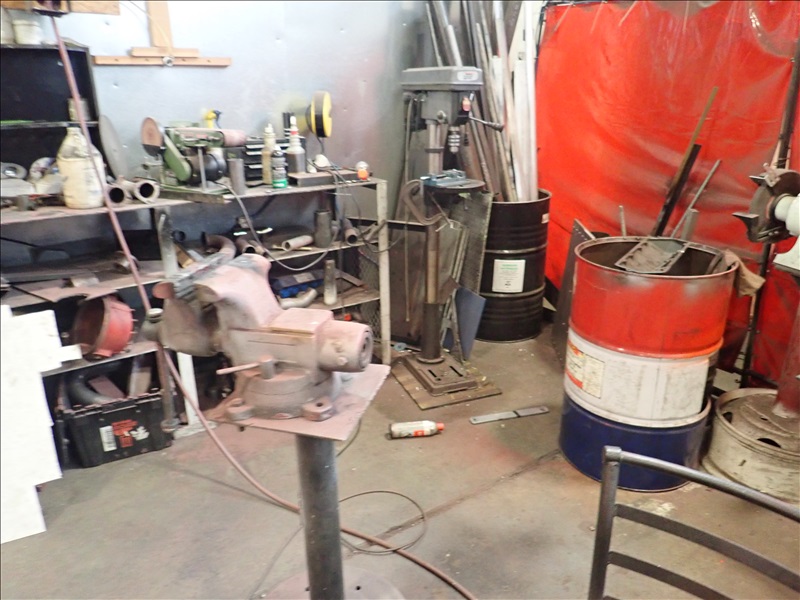 CHOP SAW, STEEL, ALUMINUM, DRILL PRESS, GRINDERS, VISE & MISC