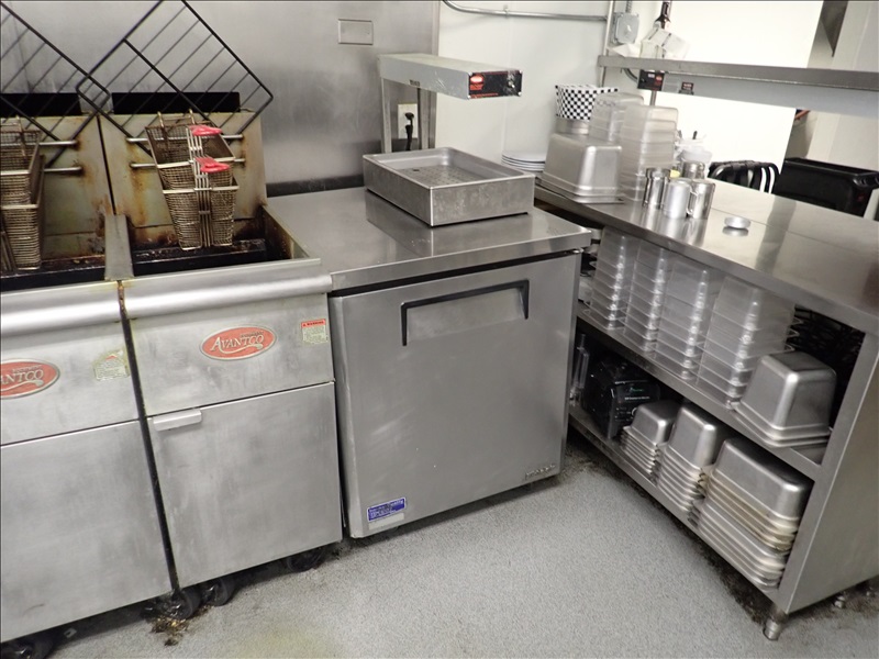 28" SINGLE DOOR COOLER ON CASTERS W/HATCO GL0-RAY FRY WARMER