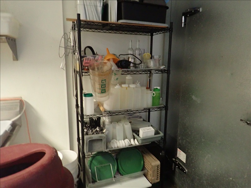 WIRE RACK W/ASSORTED KITCHEN SUPPLIES