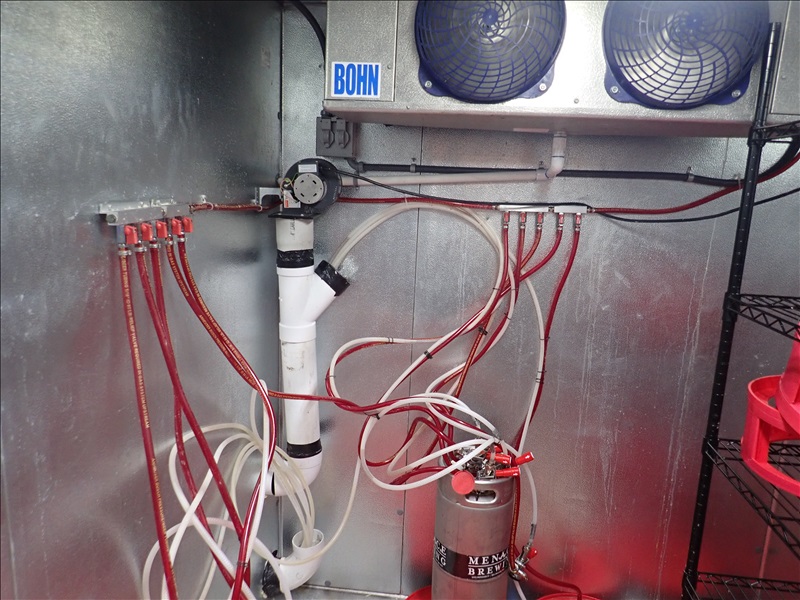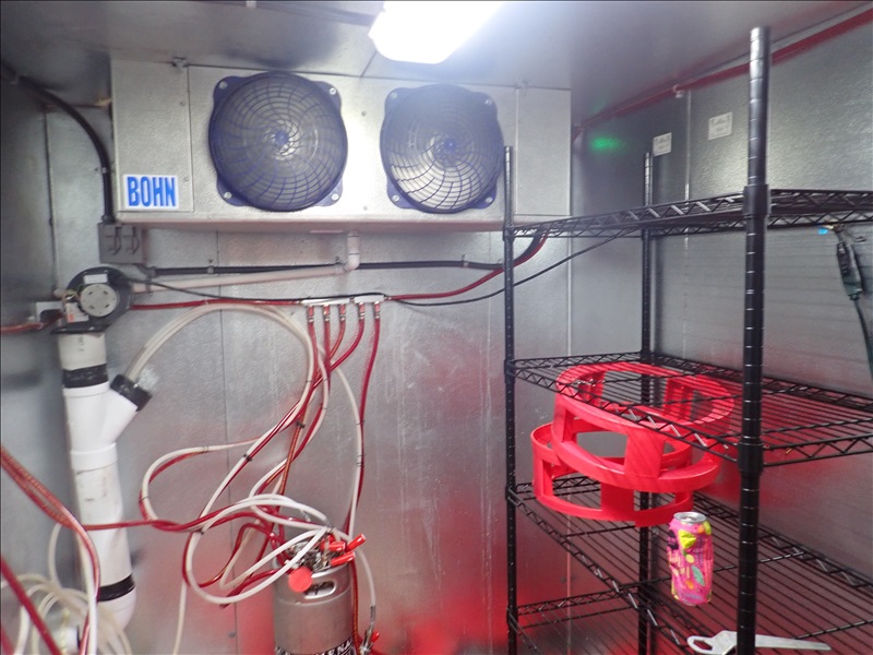 APPROX. 6'X6'7' WALK-IN KEG COOLER W/COMPRESSOR, BOHN 2-FAN EVAPORATOR, BEER LINES. LED LIGHTS, FLOOR, RACK & MAN DOOR (NOTE: COMPRESSOR MAY BE MOUNTED ON BUILDING ROOF)