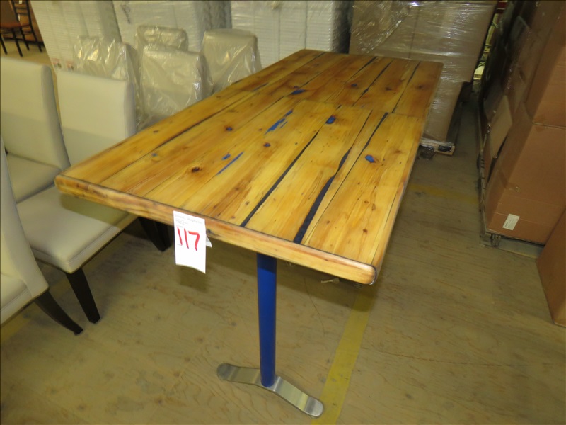 25"W X 43"H X 53"L HIGHTOP BUDDY BAR STYLE TABLE W/BLUE RESIN INLAY