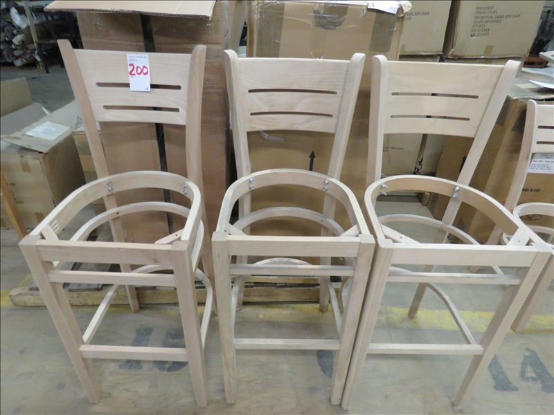 LOT, APPROX (15) WOOD BAR STOOLS (UNFINISHED & DOES NOT INCLUDE SEATS & MISSING SOME HARDWARE)