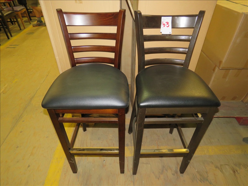 LOT, (3) DARK WALNUT LADDER BACK PADDED BAR STOOLS