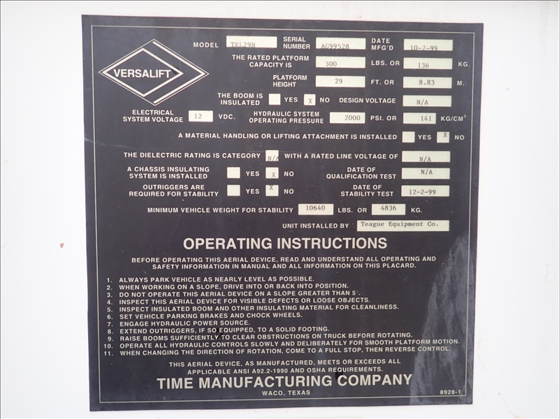 BUCKET TRUCK, V10, GAS, AUTO, VERSALIFT TEL29N 29' BUCKET