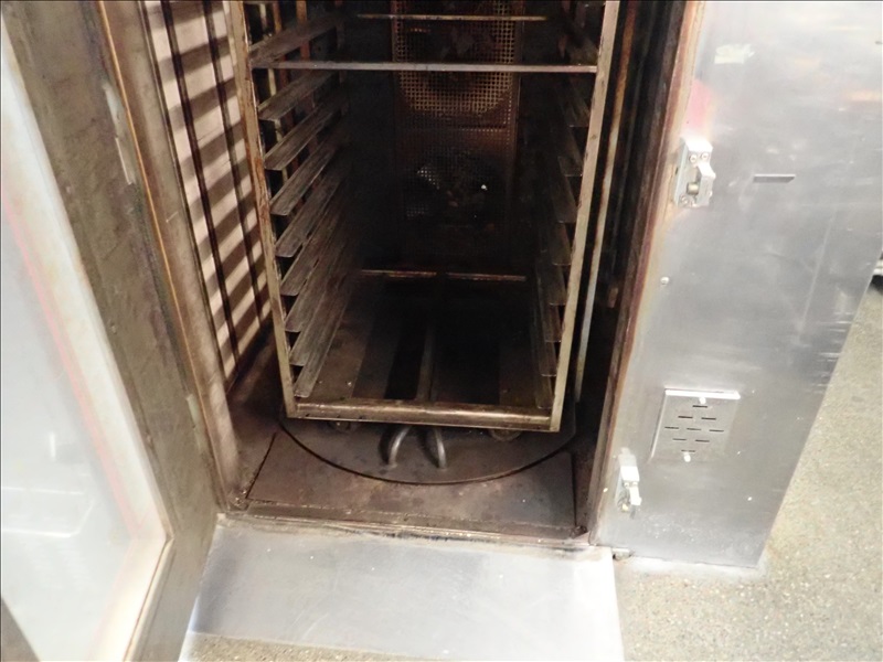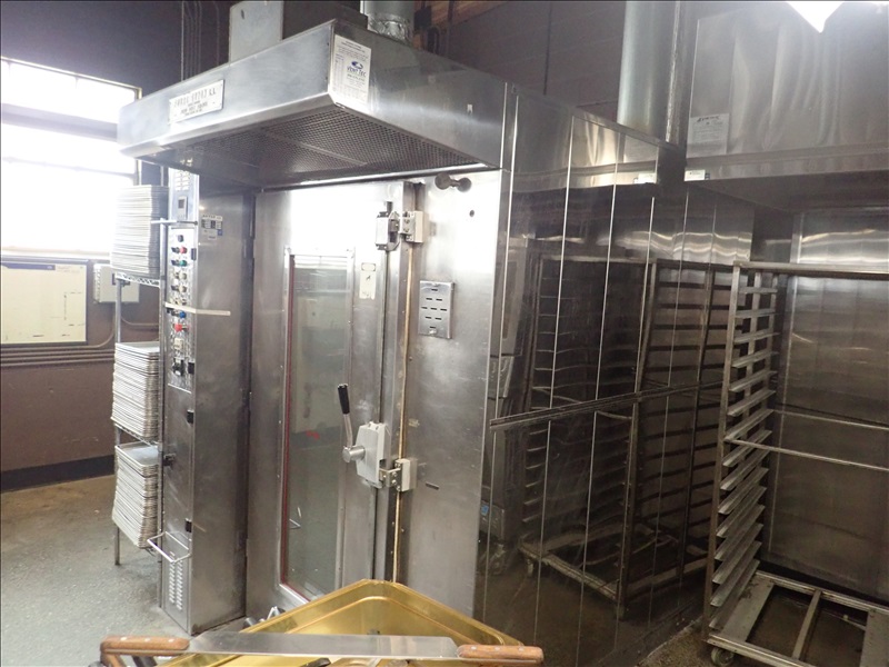 36" SINGLE RACK ROTARY RACK OVEN, NATURAL GAS, EXHAUST HOOD, CONTROLS, STEAM