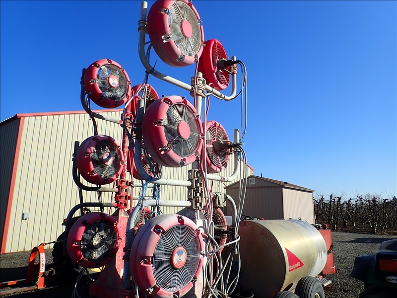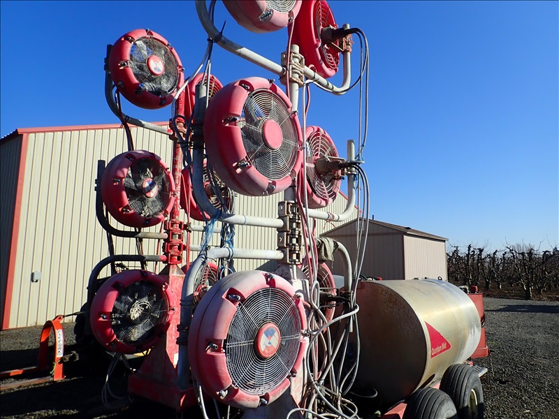 400 gallon t/a pull behind sprayer, aux. hydraulic unit, SS tank, (6) SARDI fans, controls