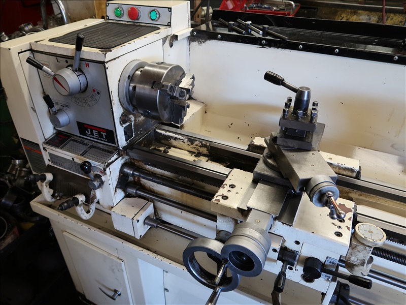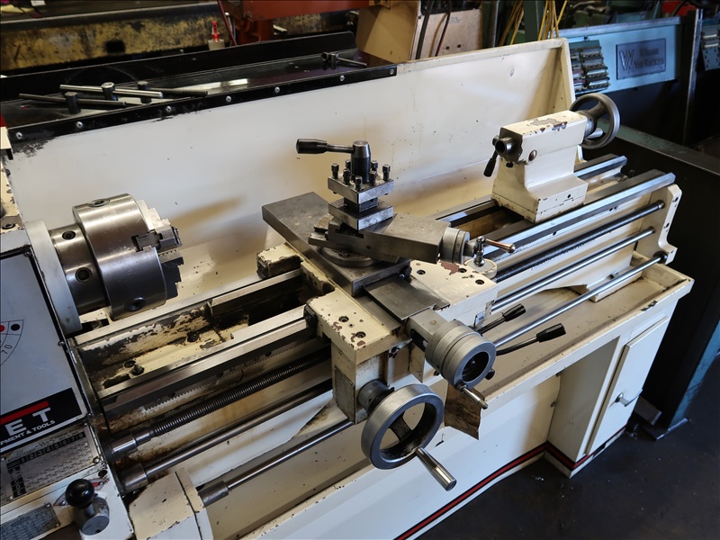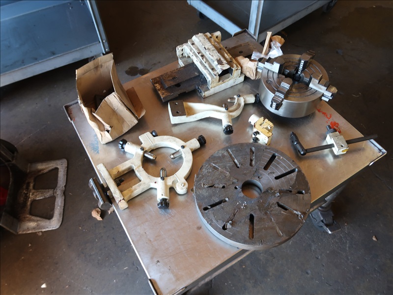 GEAR HEAD BENCH LATHE, 3-JAW & 4-JAW CHUCKS, 52" BED, TAIL STOCK, MISC. PARTS