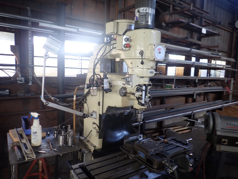 2HP VERTICAL MILLING MACHINE, 9"X42" POWER TABLE, A&T DELUXE POWER DRAW BAR, VISE