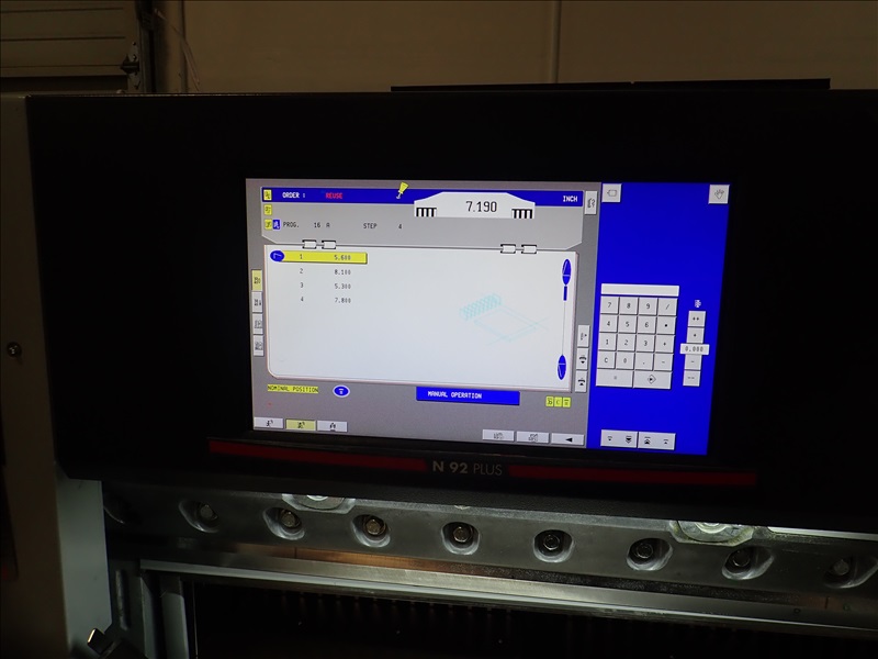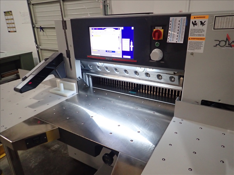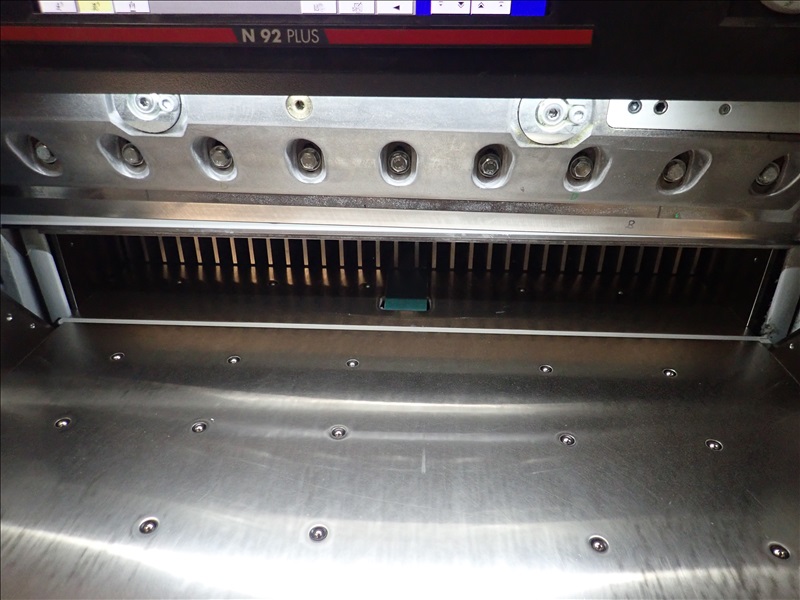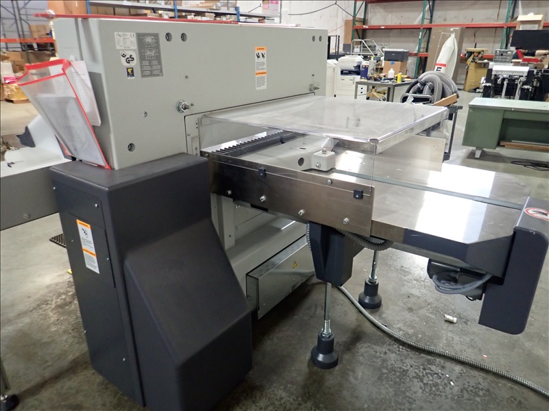 36" PAPER CUTTER, 115" ROLL FEED TABLE, 36" BACK GAUGE, LASER CURTAINS, (2) SPARE KNIVES, TOUCHSCREEN CONTROLS, 171,480 TOTAL CUTS