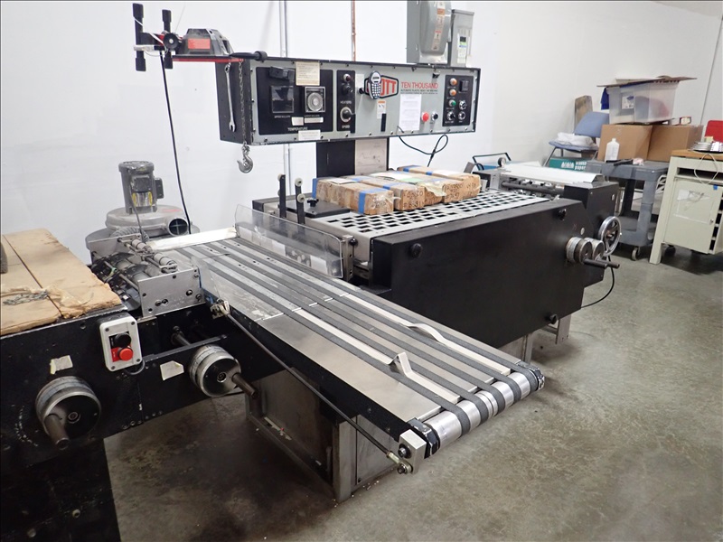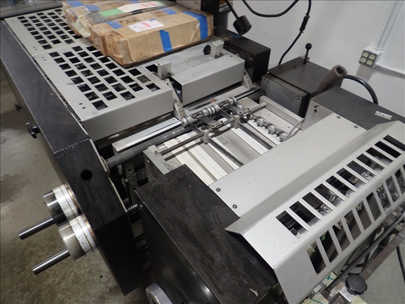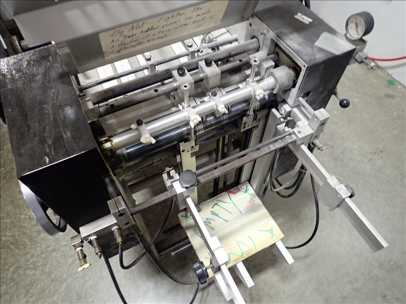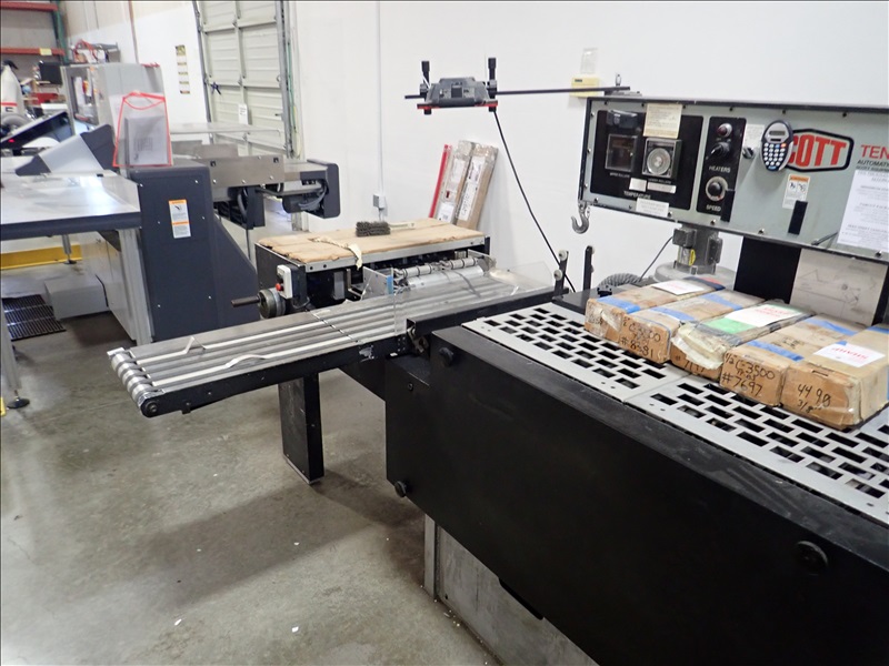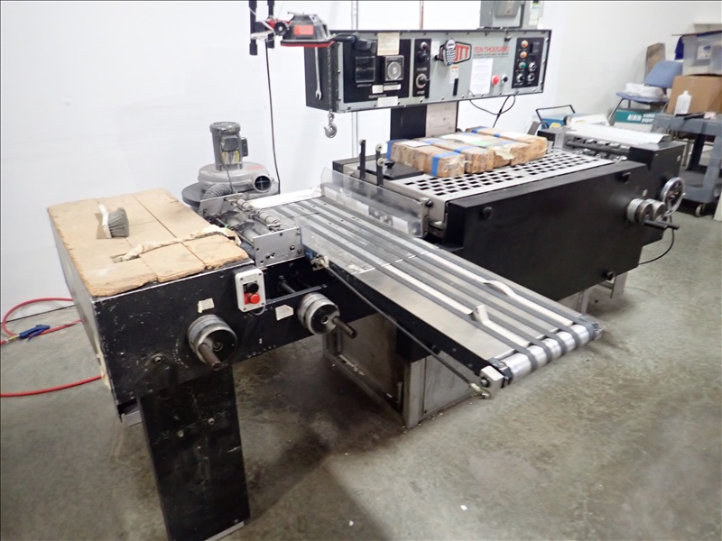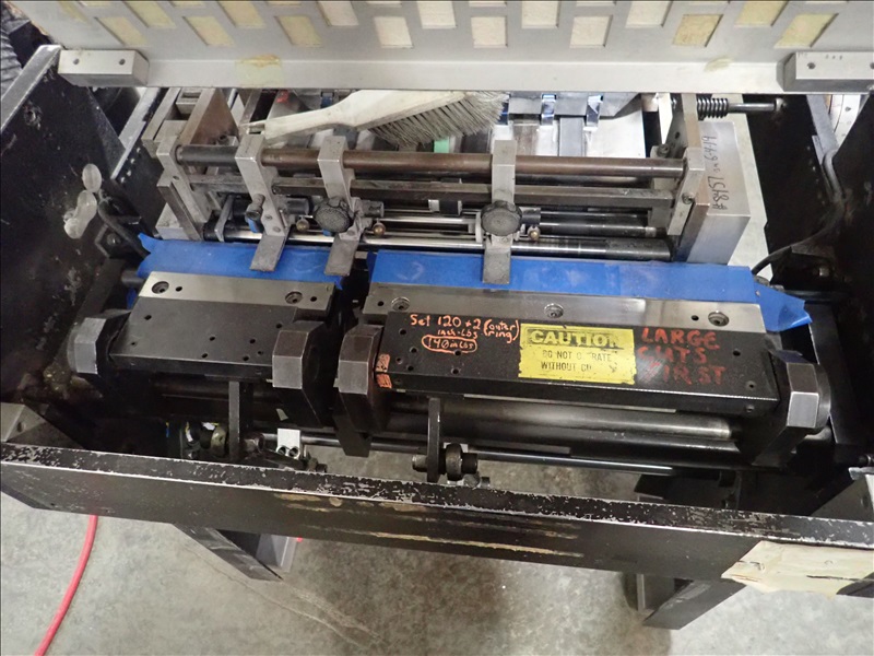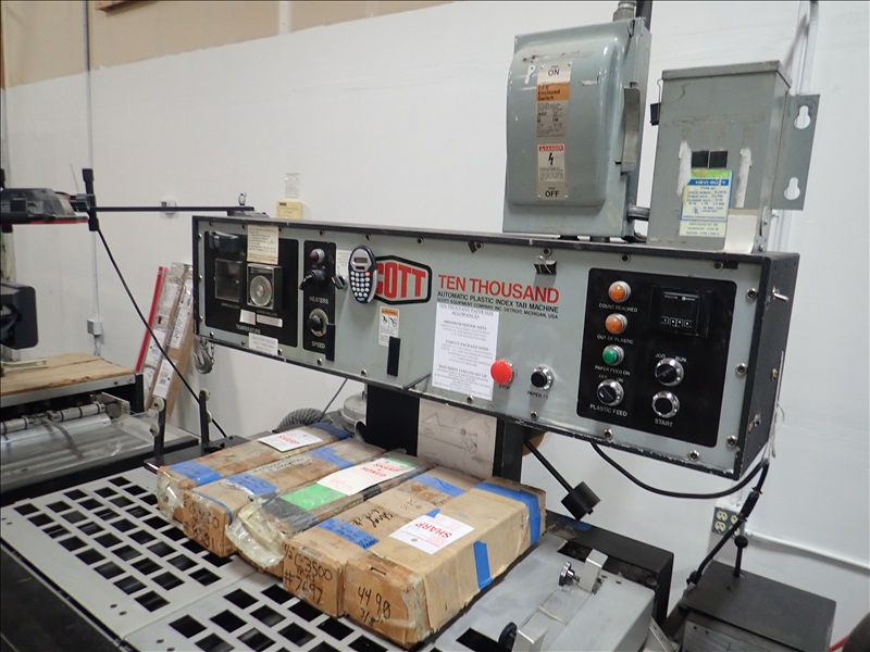 AUTOMATIC PLASTIC INDEX TAB MACHINE, FEEDER, HEATED ROLLS, SPARE KNIFE SETS, OUTFEED CONVEYOR, DUST COLLECTOR, VACUUM PUMP