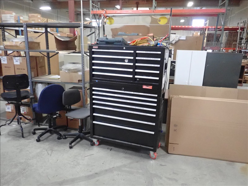 TOP & BOTTOM 16-DRAWER ROLLAWAY TOOLBOX W/HAND TOOLS