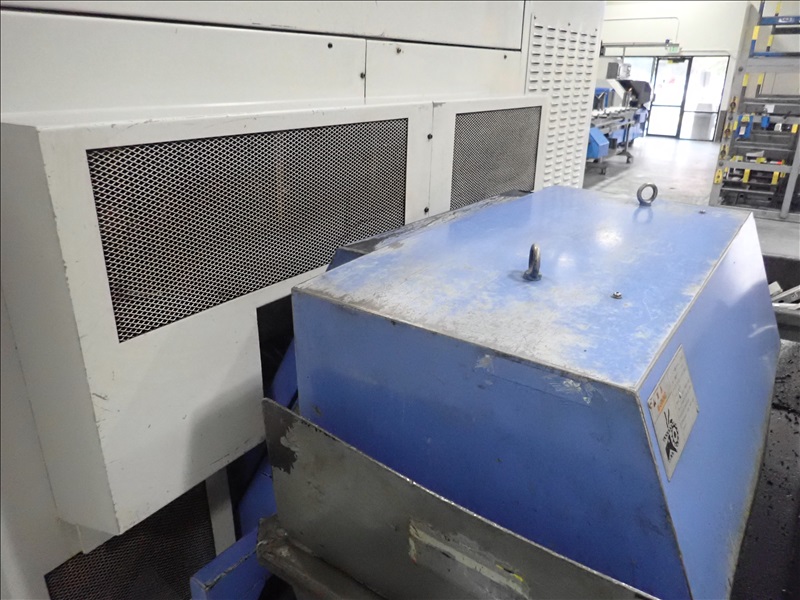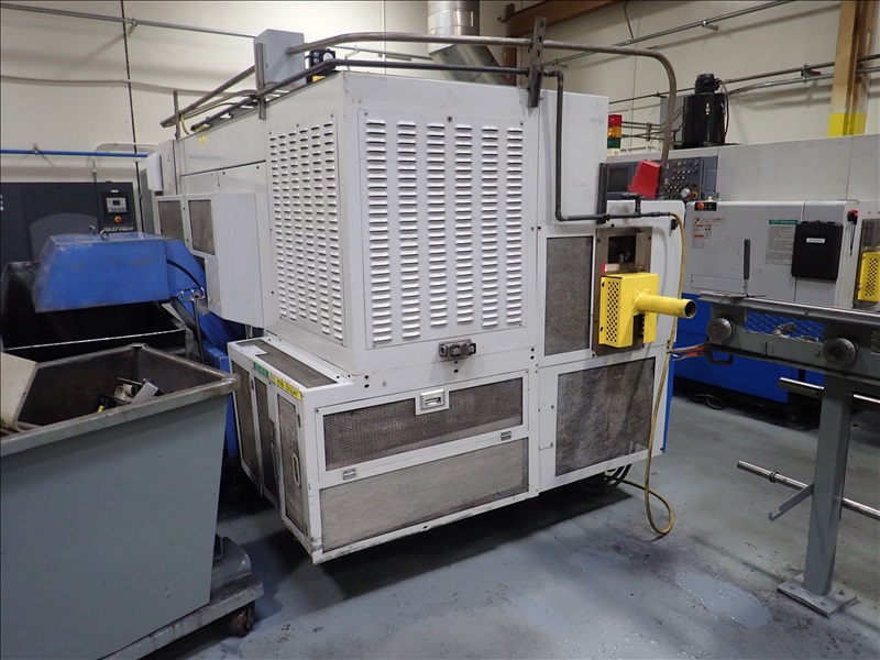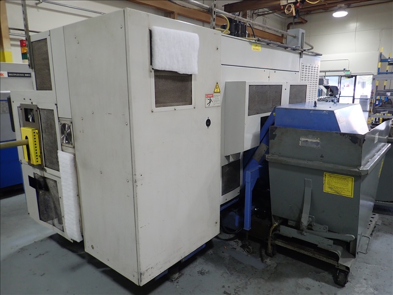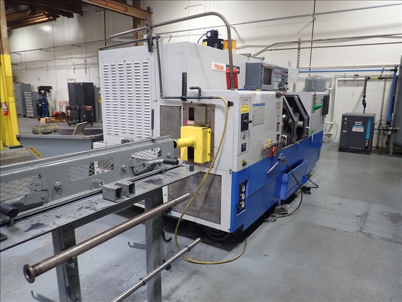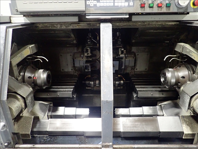 DUAL TURRET CNC LATHE, (2) 12-STATION TURRETS, (5) VERTICAL LIVE TOOL HOLDERS, (4) HORIZONTAL LIVE TOOL HOLDERS, TSUBAKIMOTO CHIP CONVEYOR, MAZATROL T PLUS CONTROLS, BAR FEEDER READY, ROYAL FX300 FILTERMIST, S/N: 120445