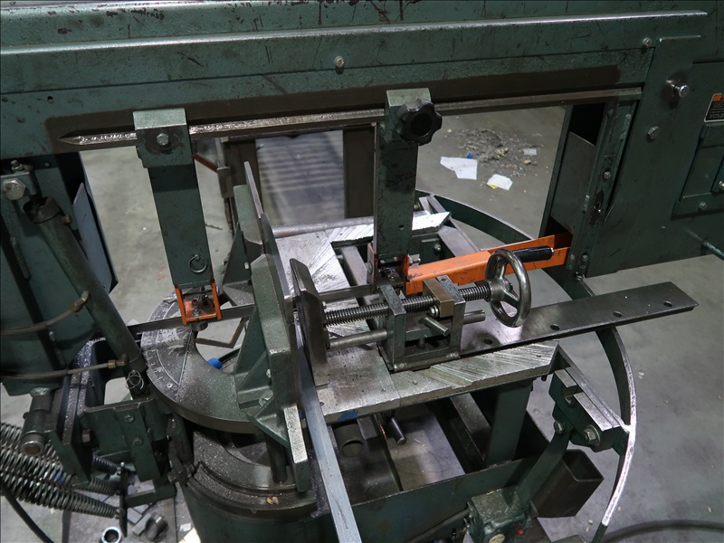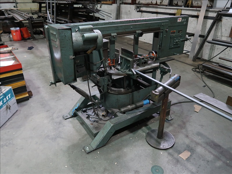 HORIZONTAL MITERING STEEL CUTTING BANDSAW WITH IN/OUT ROLL CONVEYOR