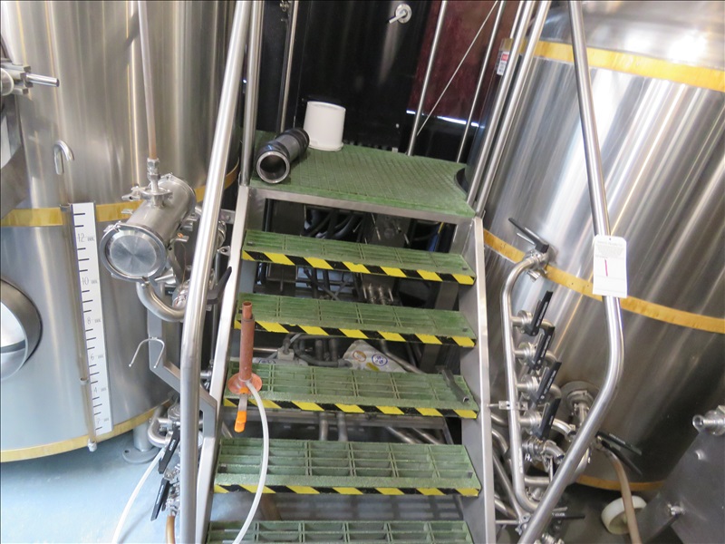 10-BARREL, 2-VESSEL BREWHOUSE W/330-GAL MASH/LAUTER TUN 462-GAL GAS FIRED LIQUOR TANK, CONTROLS, HEAT EXCHANGER, (2) PUMPS, SS PIPING & CATWALK