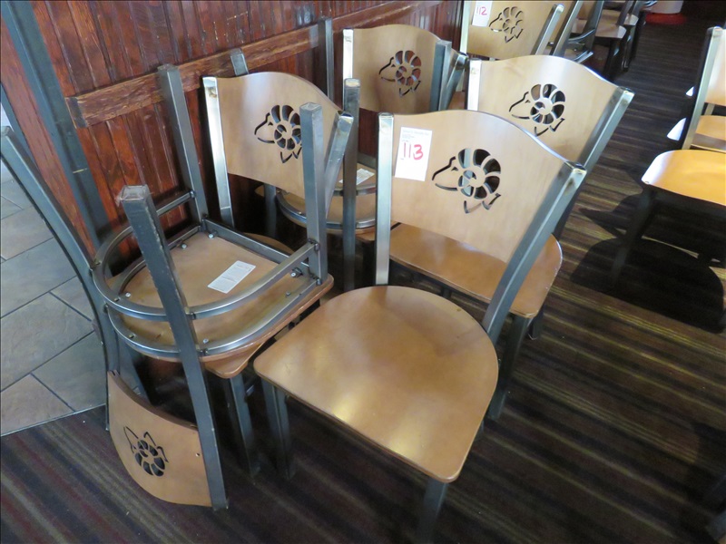 LOT, (6) WOOD DINING CHAIRS W/"RAM" CUT OUT